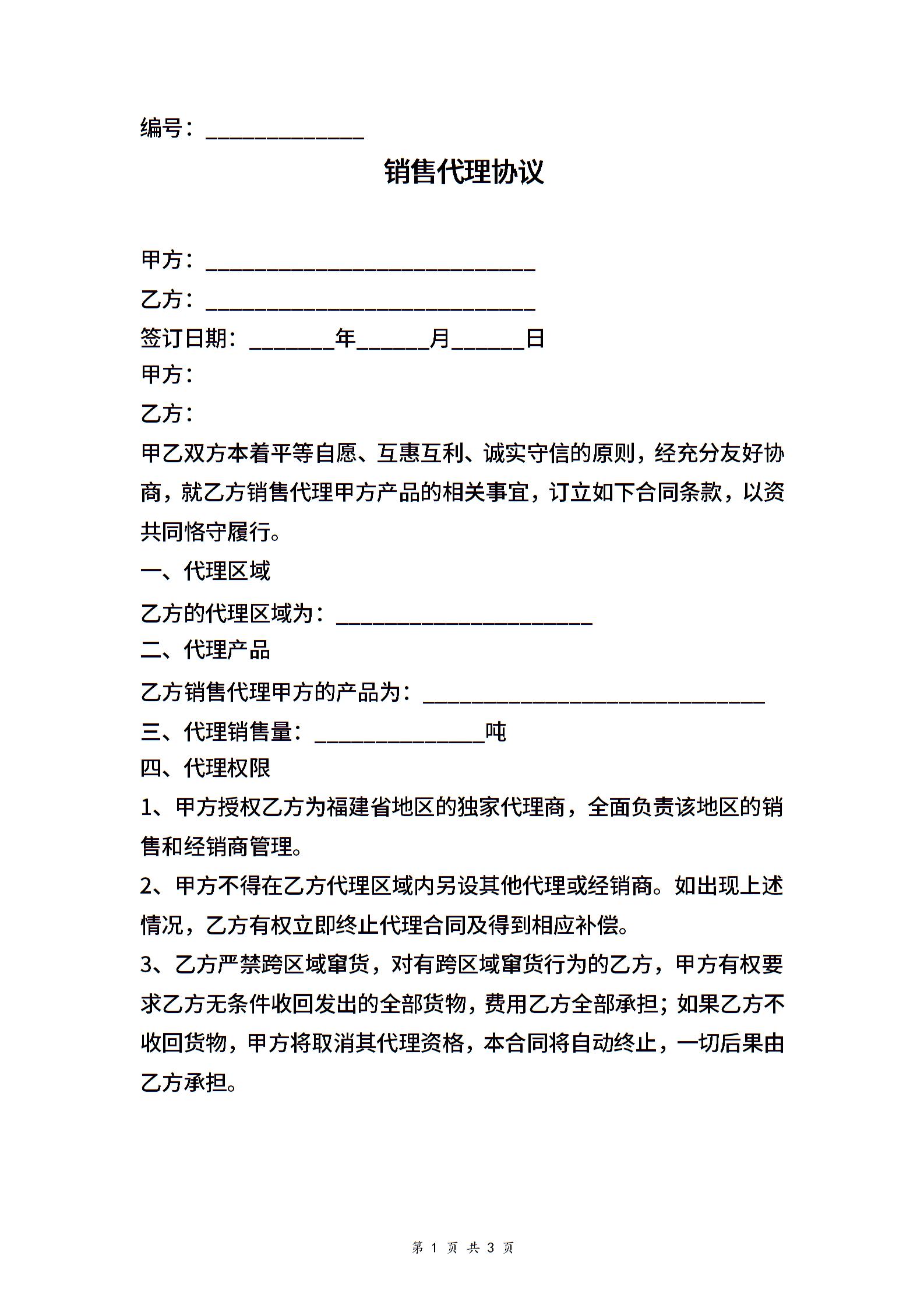 销售代理合同协议