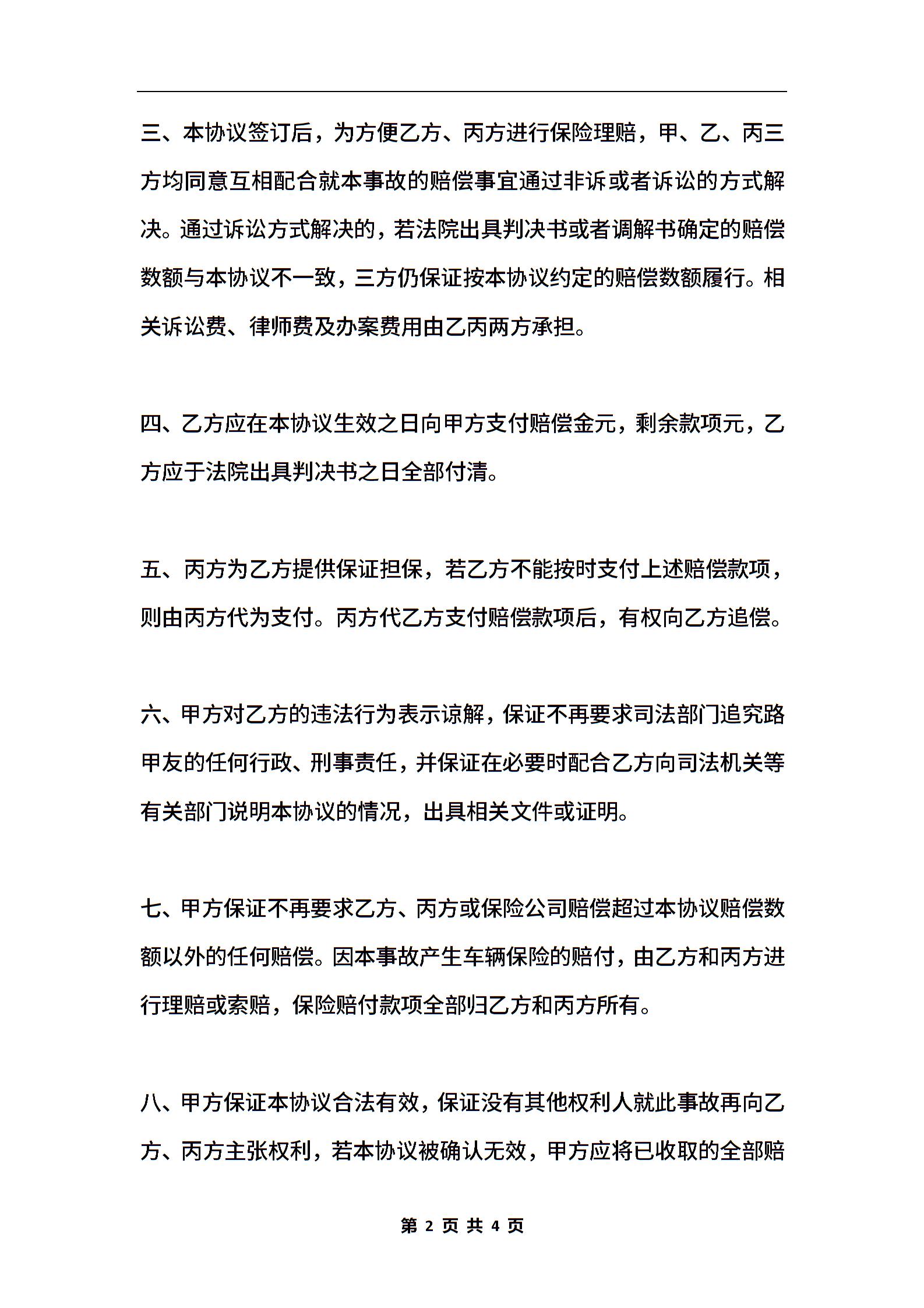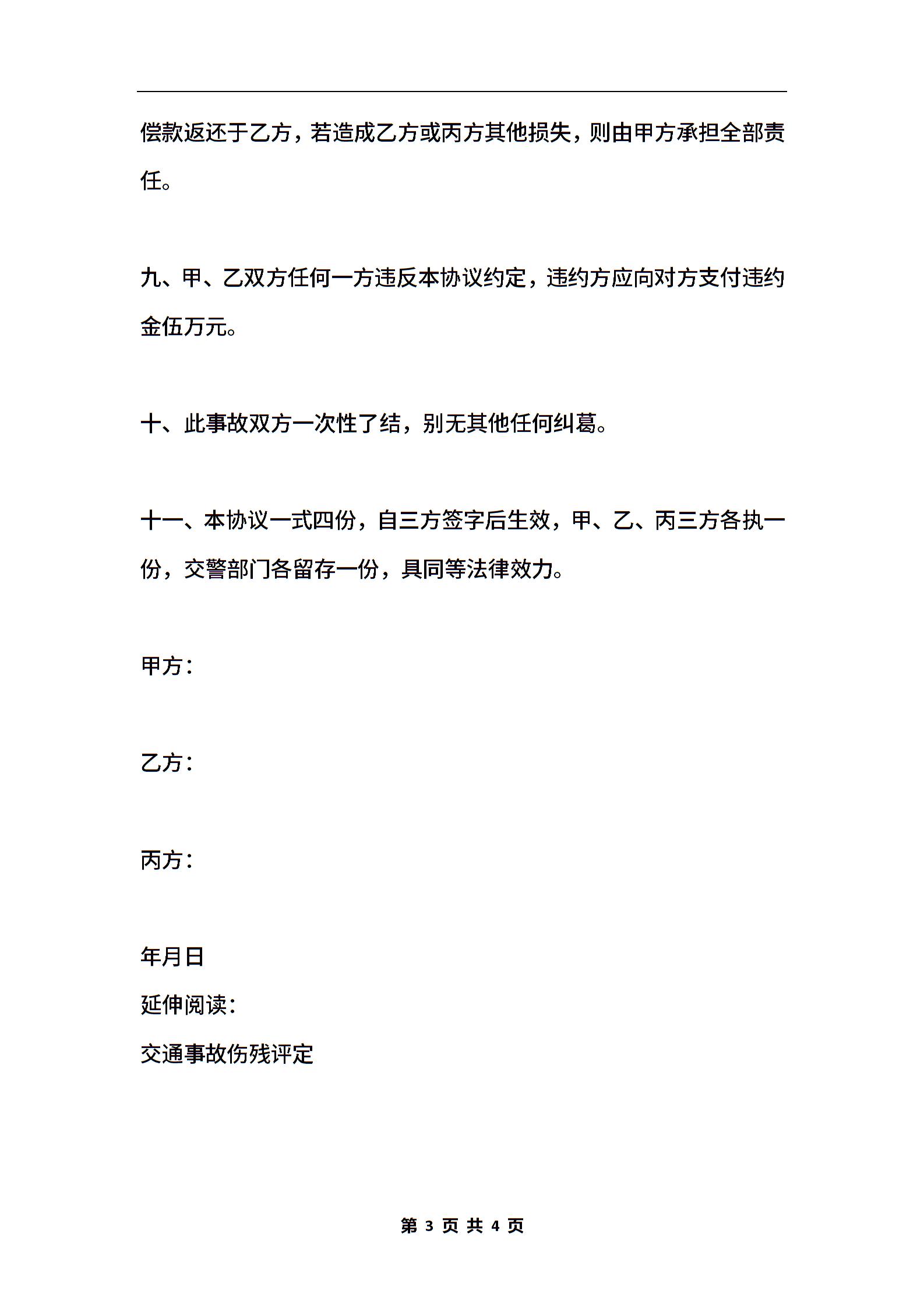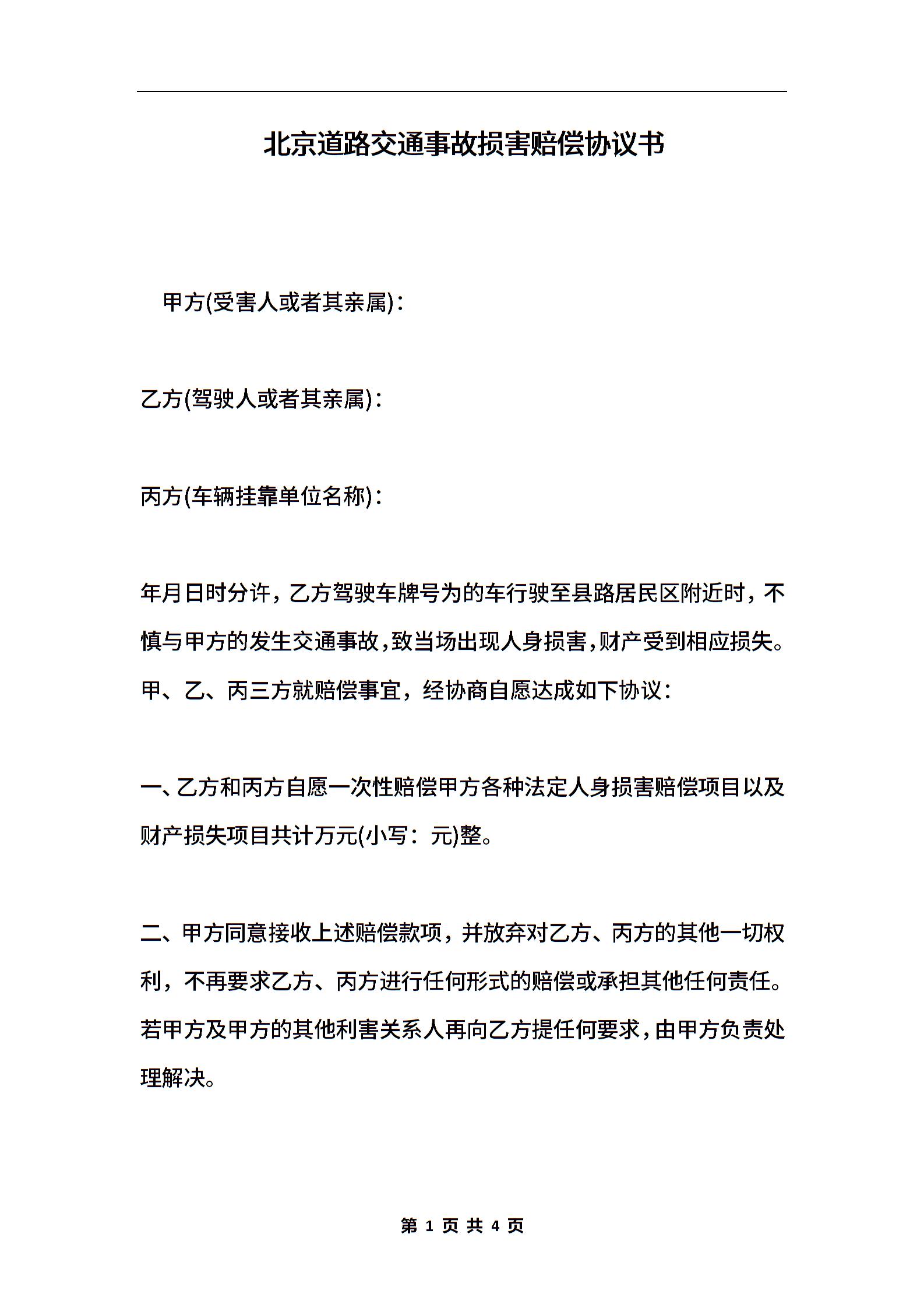 北京道路交通事故损害赔偿协议书