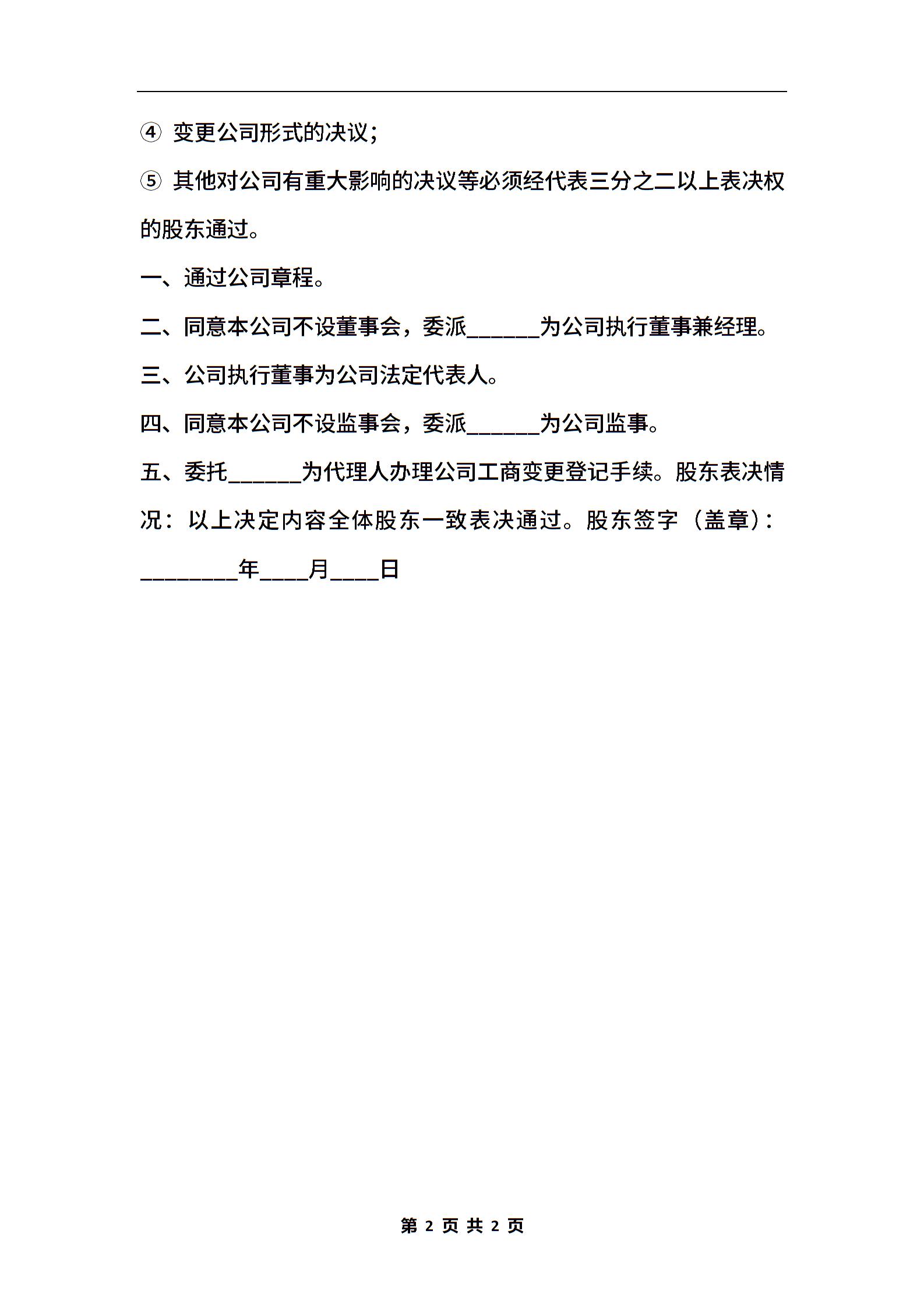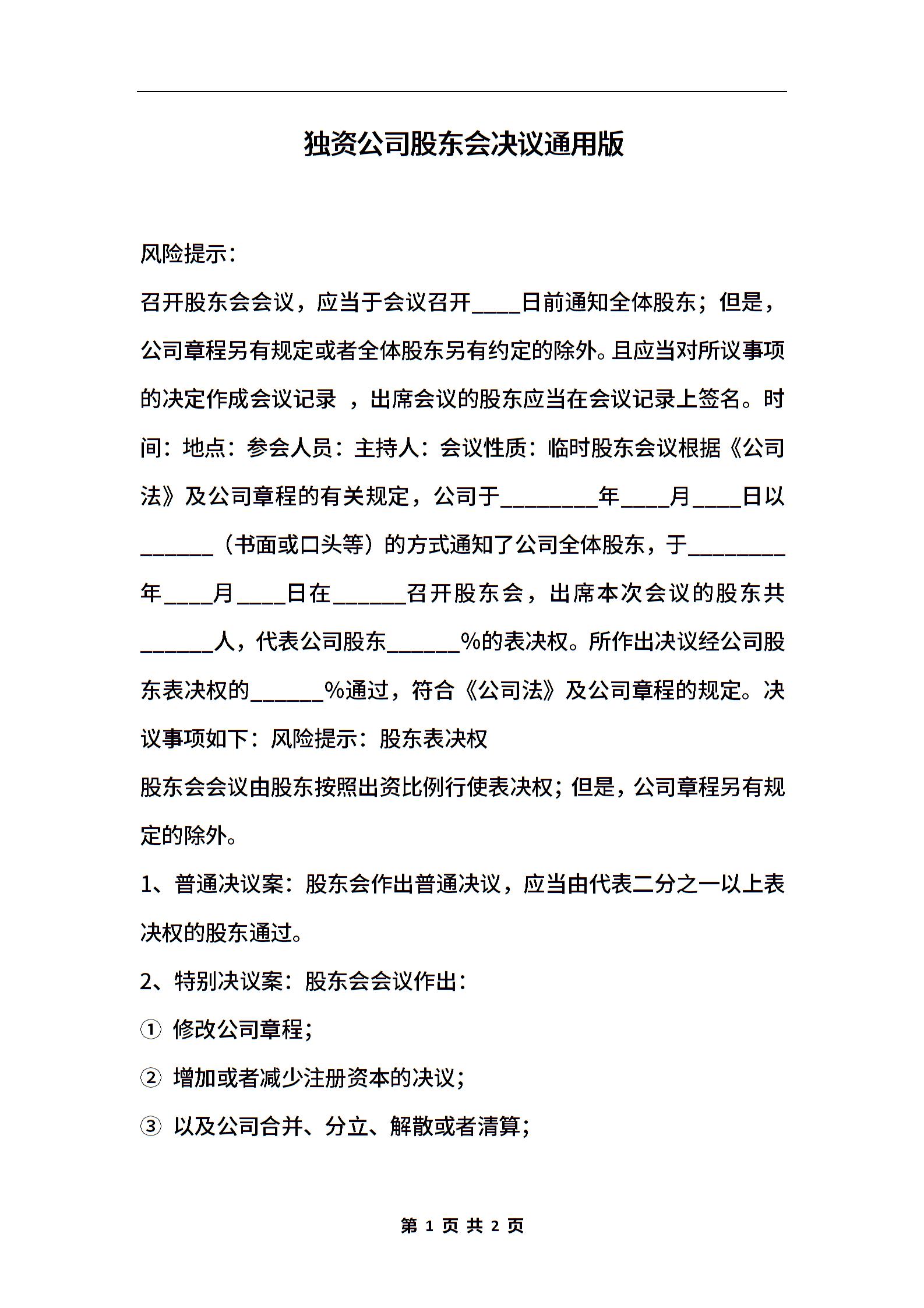 独资公司股东会决议通用版