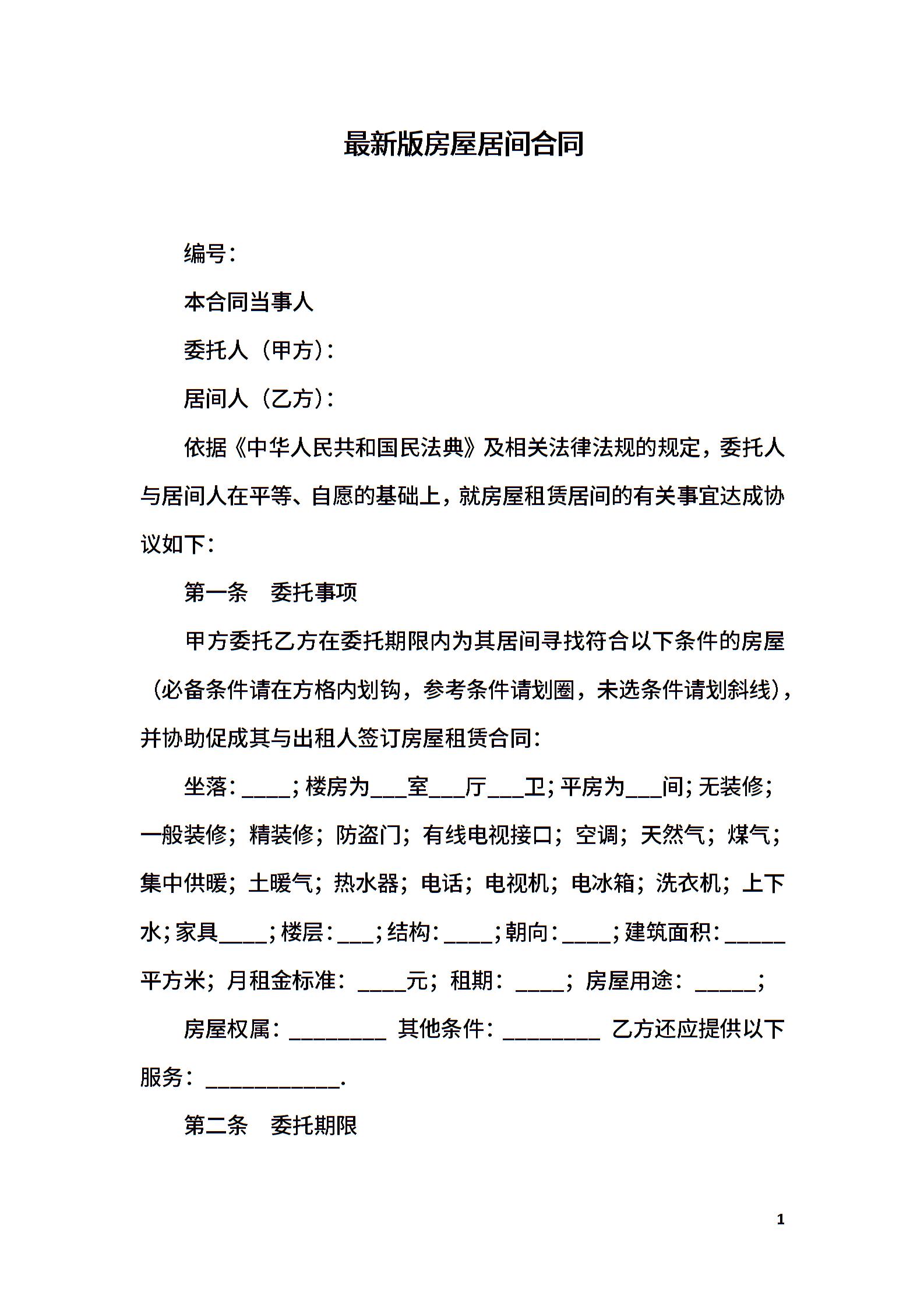 最新版房屋居间合同