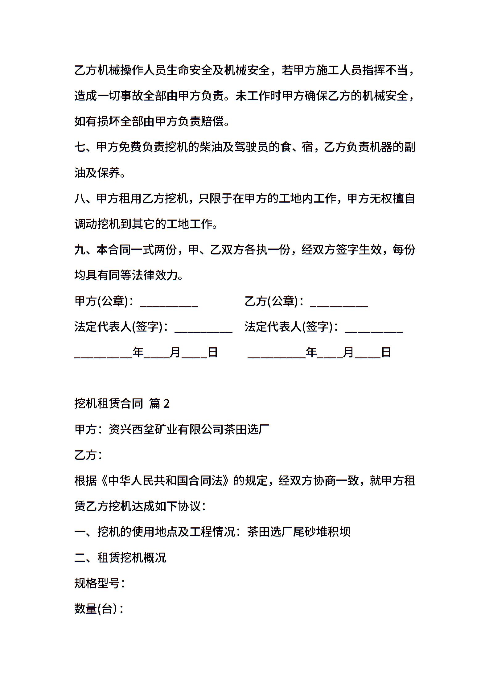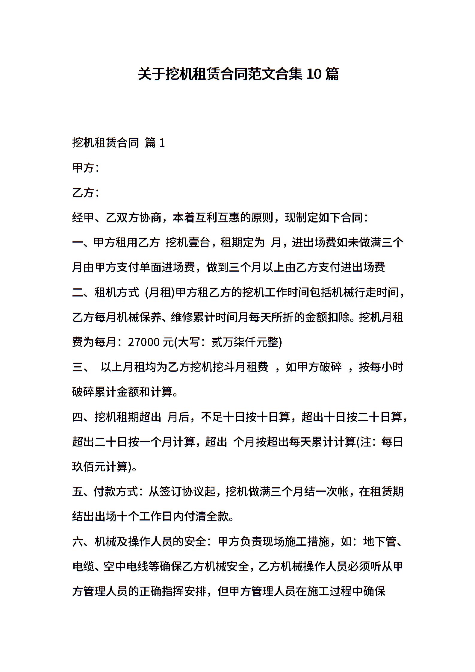 关于挖机租赁合同范文合集10篇