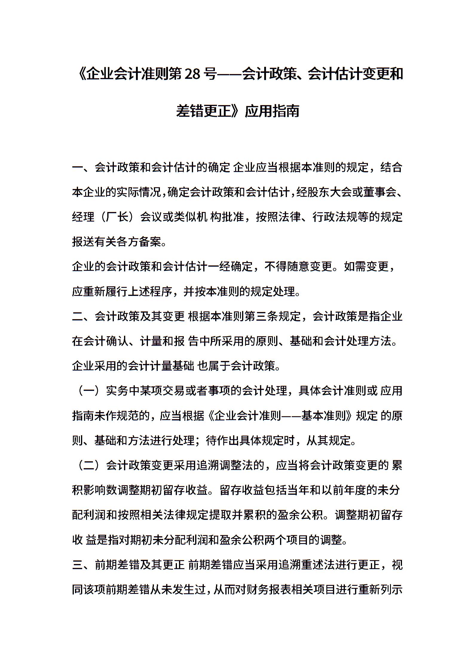 《企业会计准则第28号——会计政策、会计估计变更和差错更正》应用指南