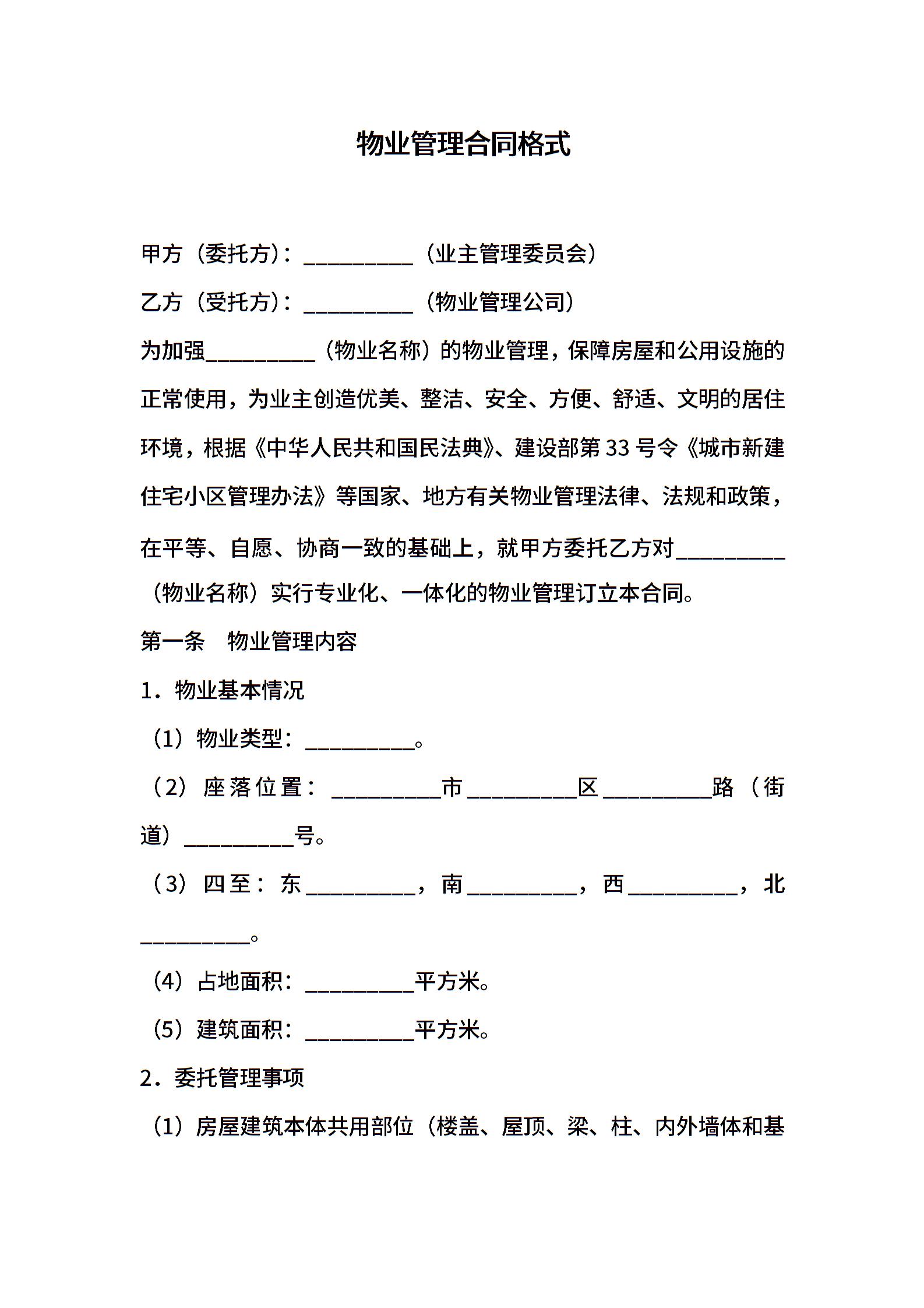 物业管理合同格式