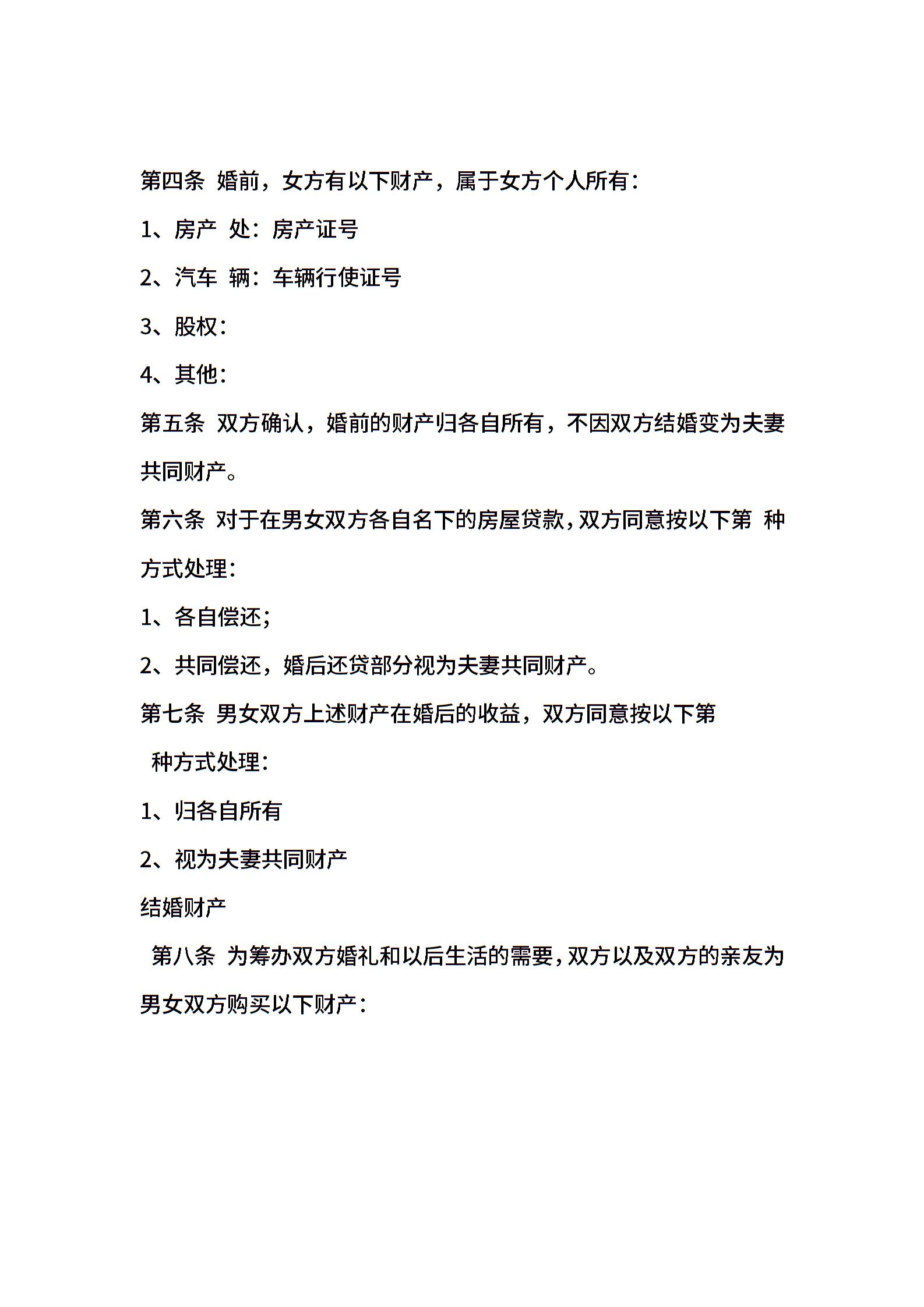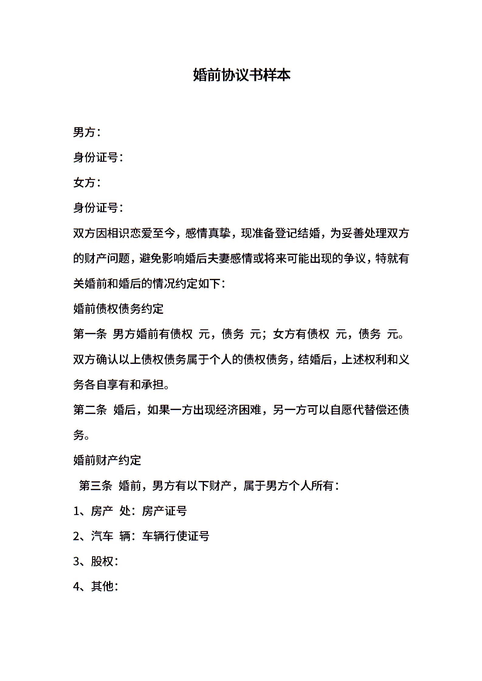 婚前协议书样本