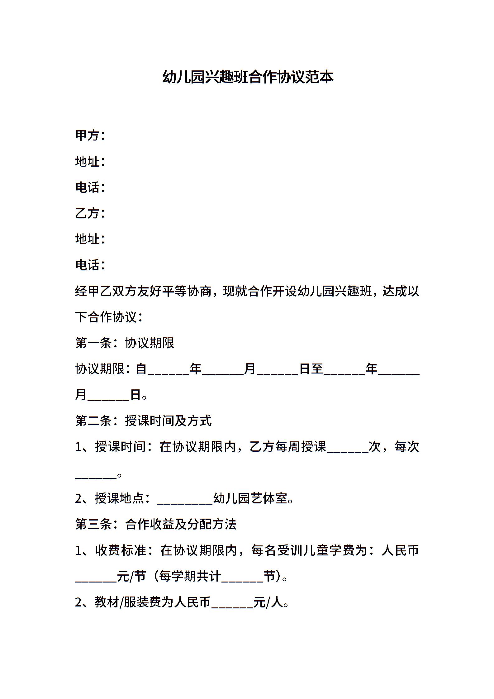 当前位置:量子办公 > 合同模板 > 合作合同 >