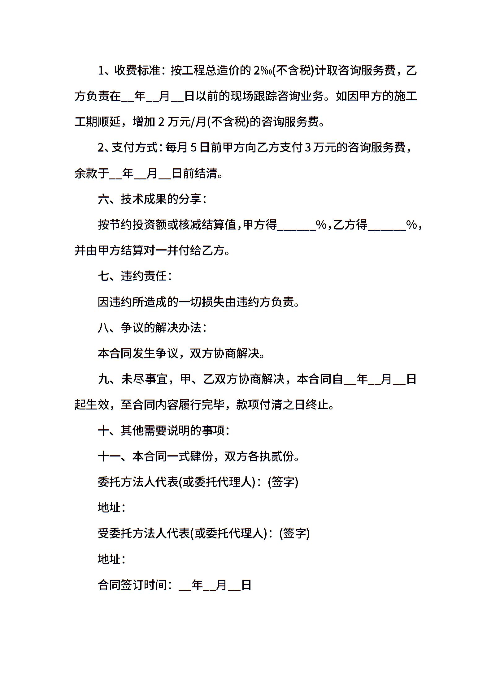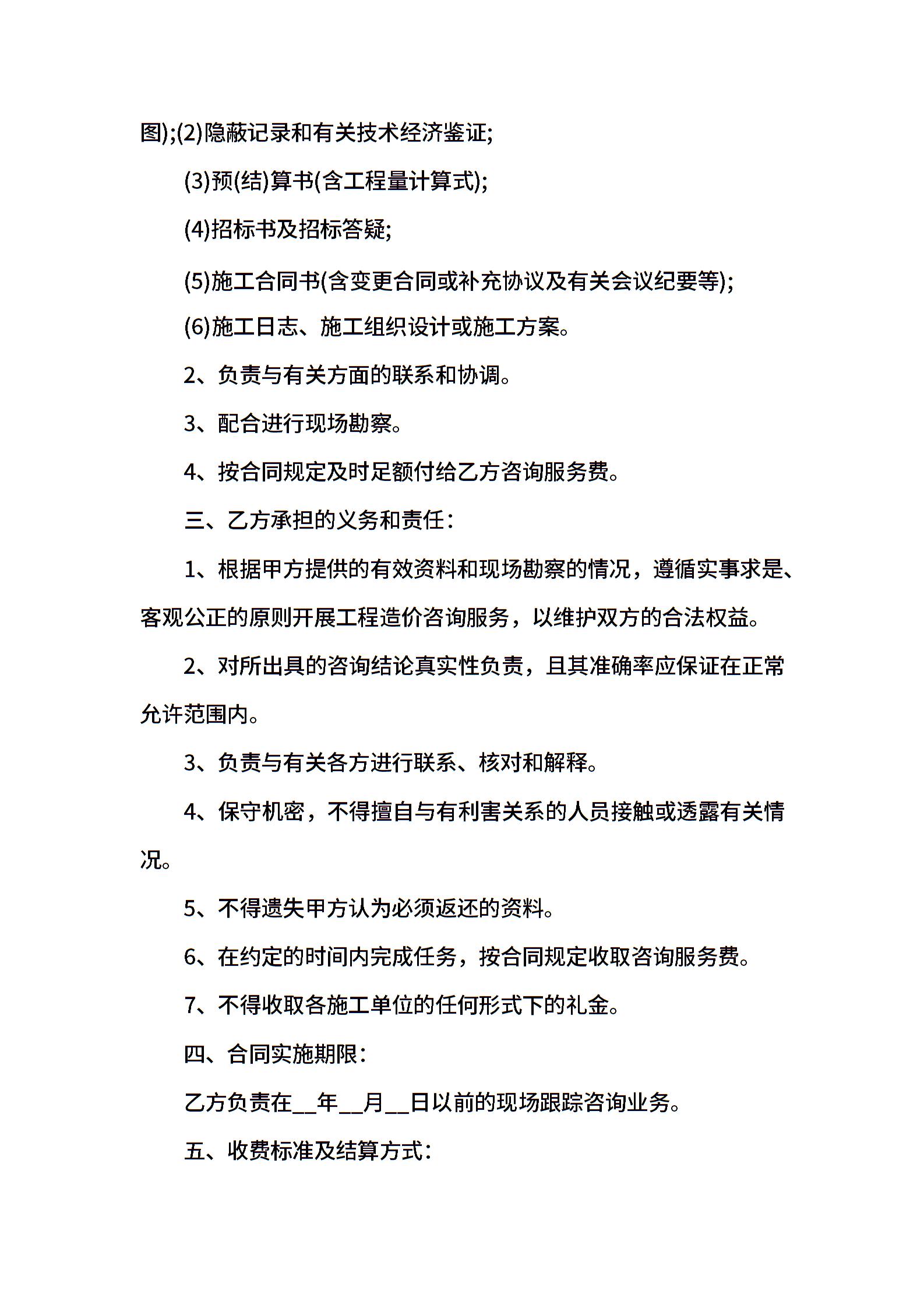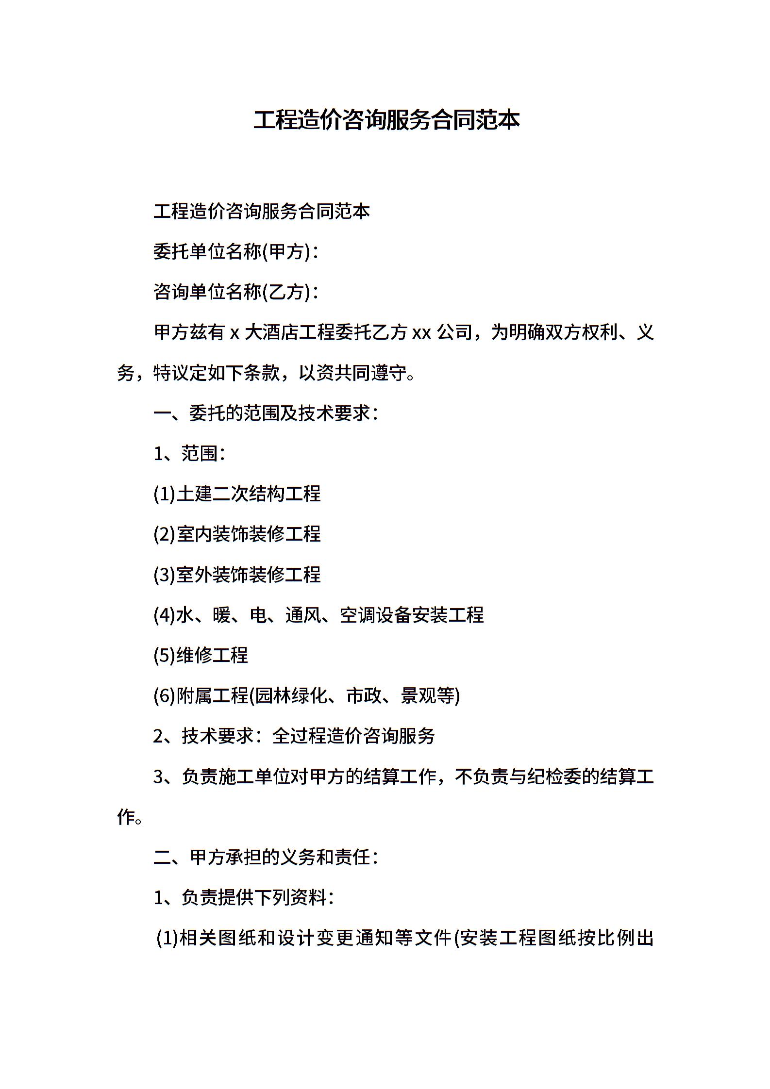 工程造价咨询服务合同范本