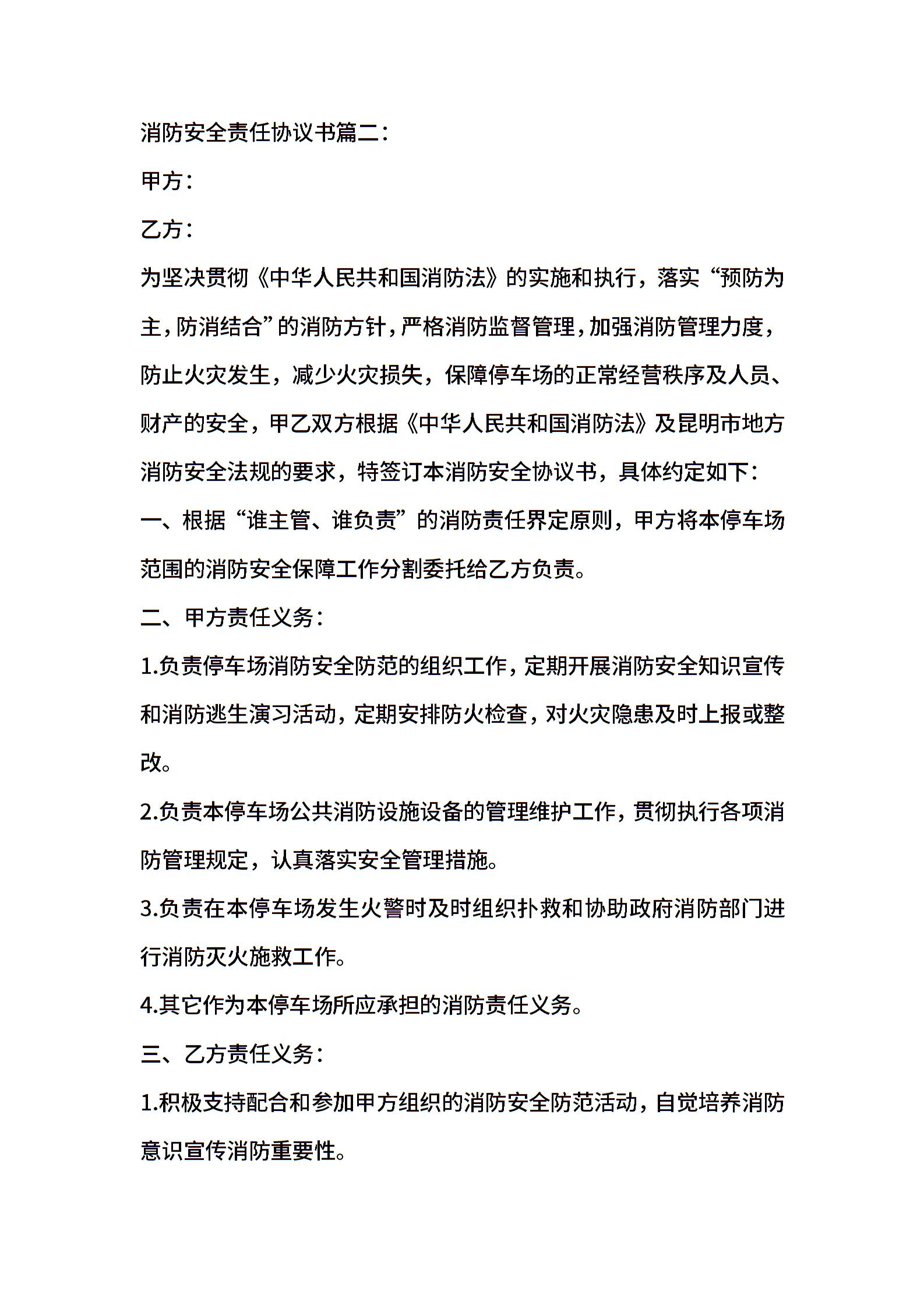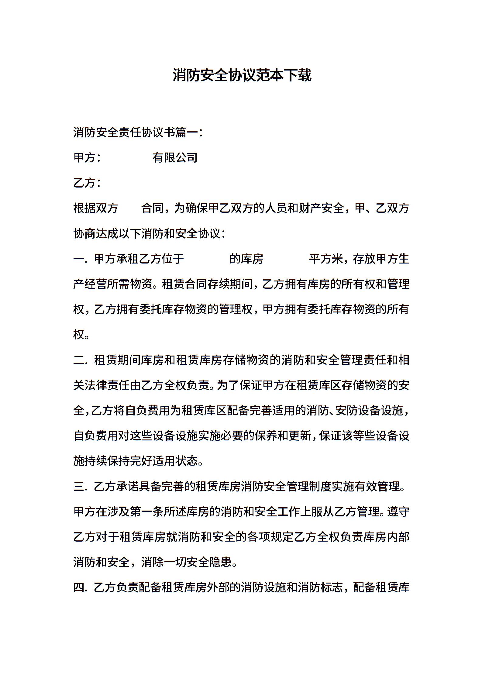 消防安全协议范本下载