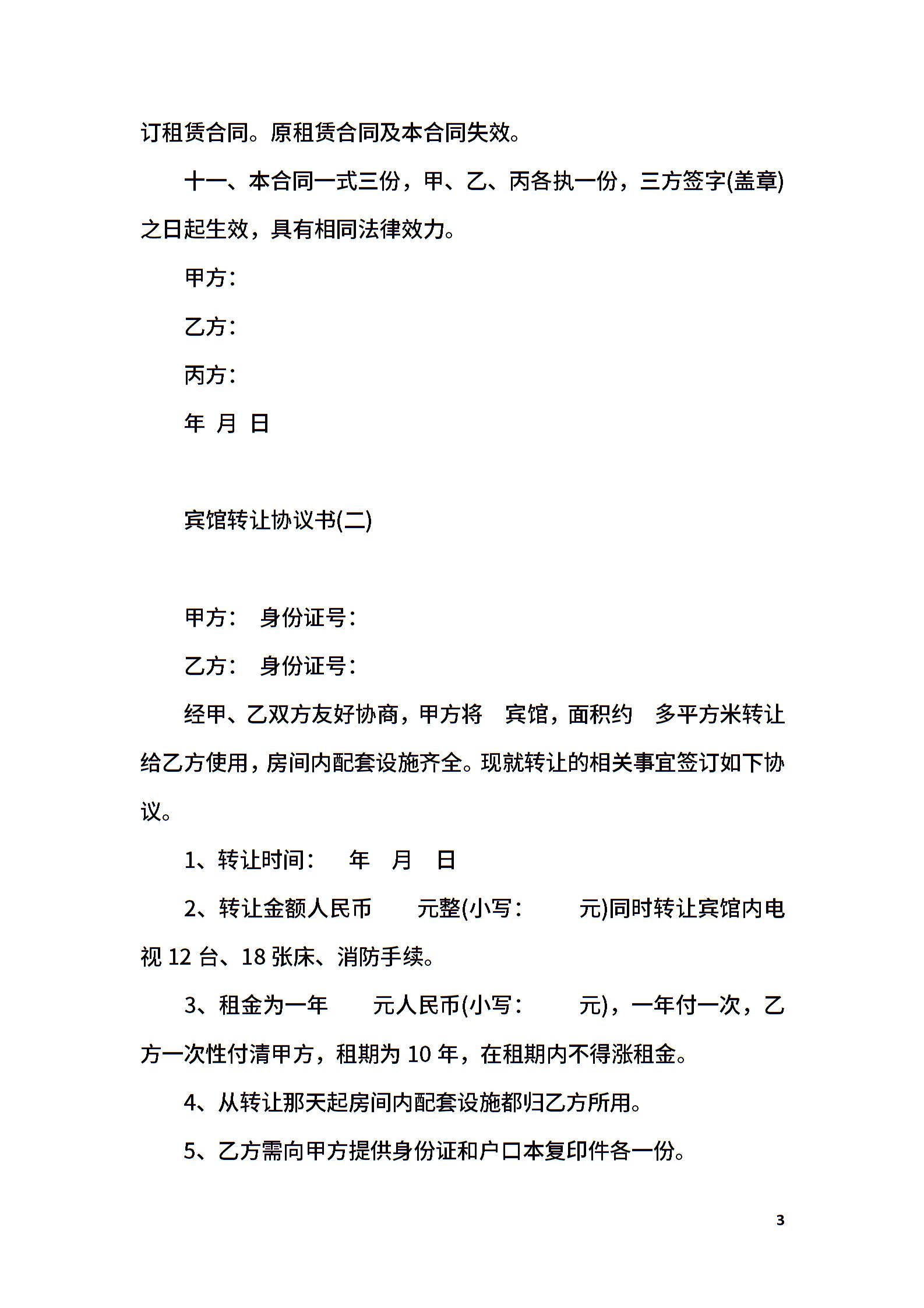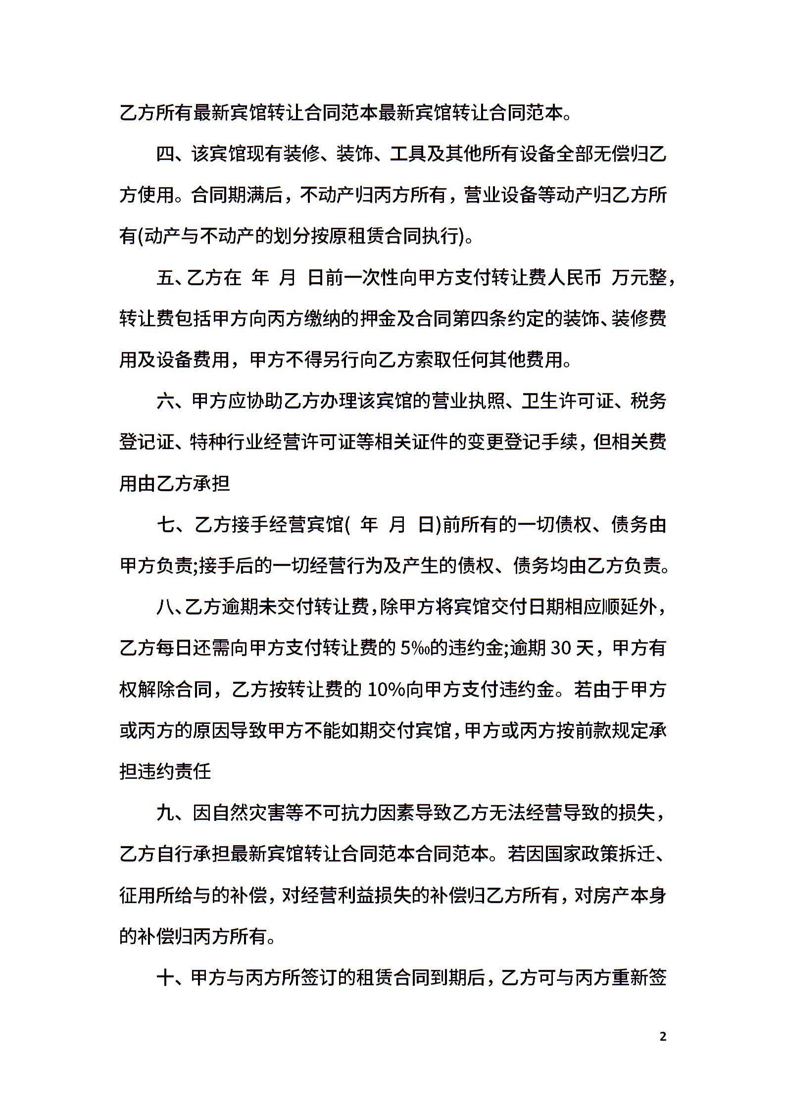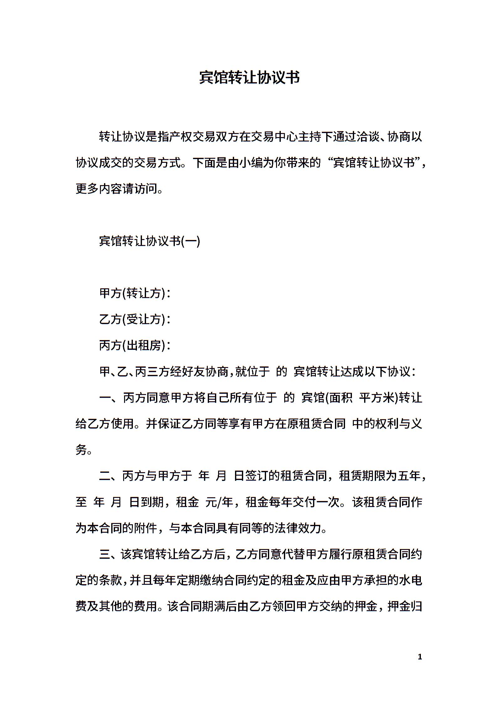 宾馆转让协议书