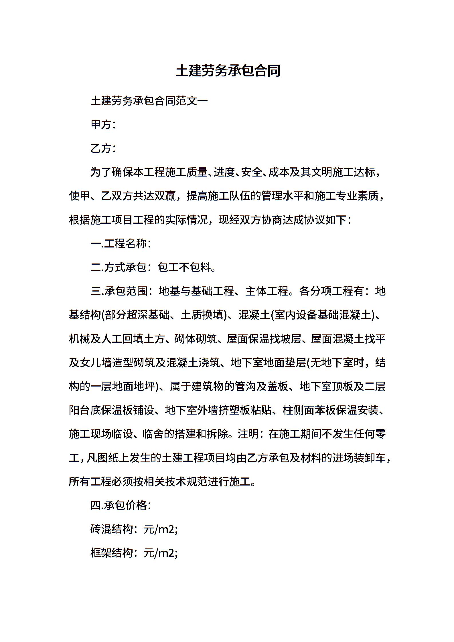 土建劳务承包合同