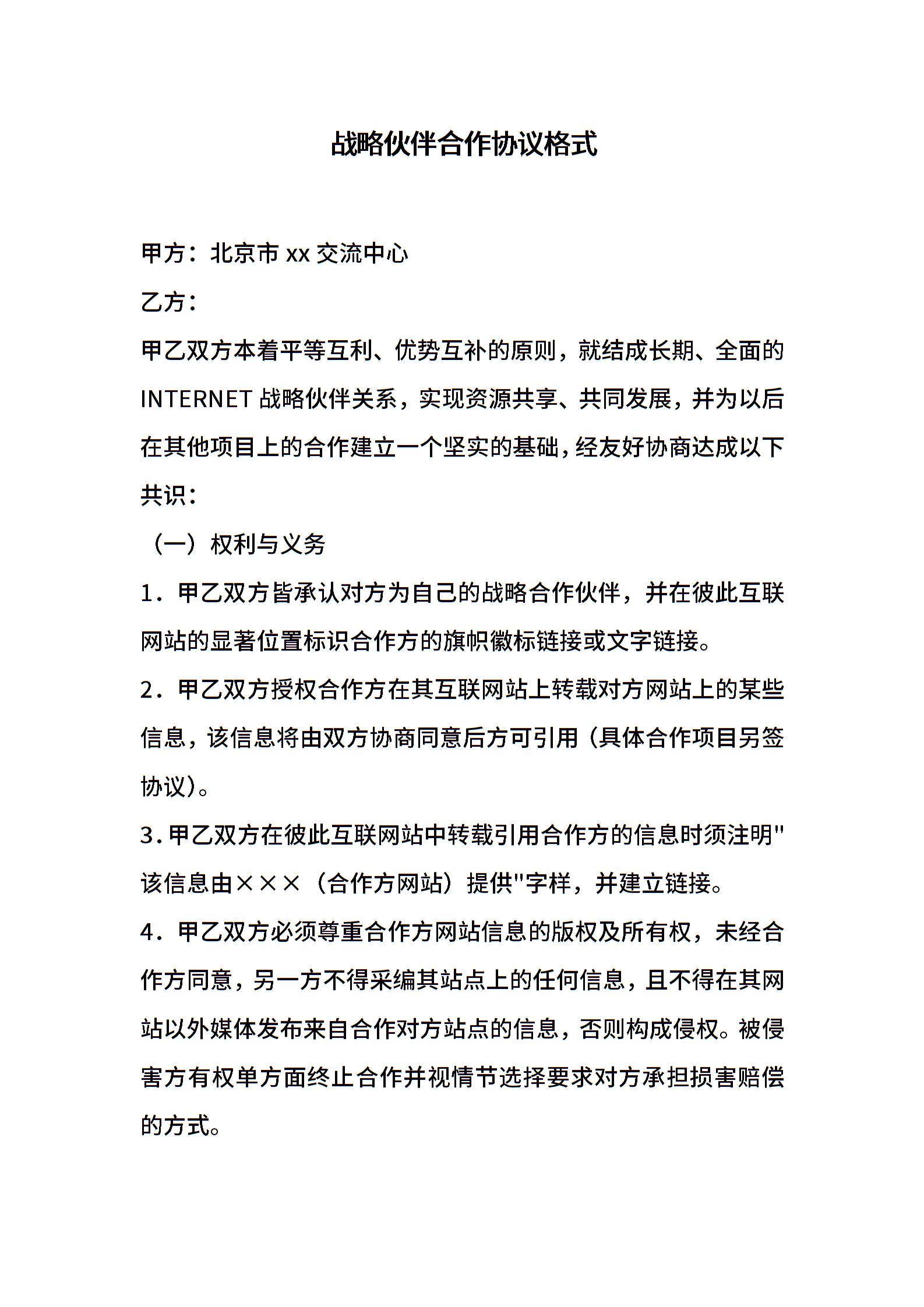 战略伙伴合作协议格式