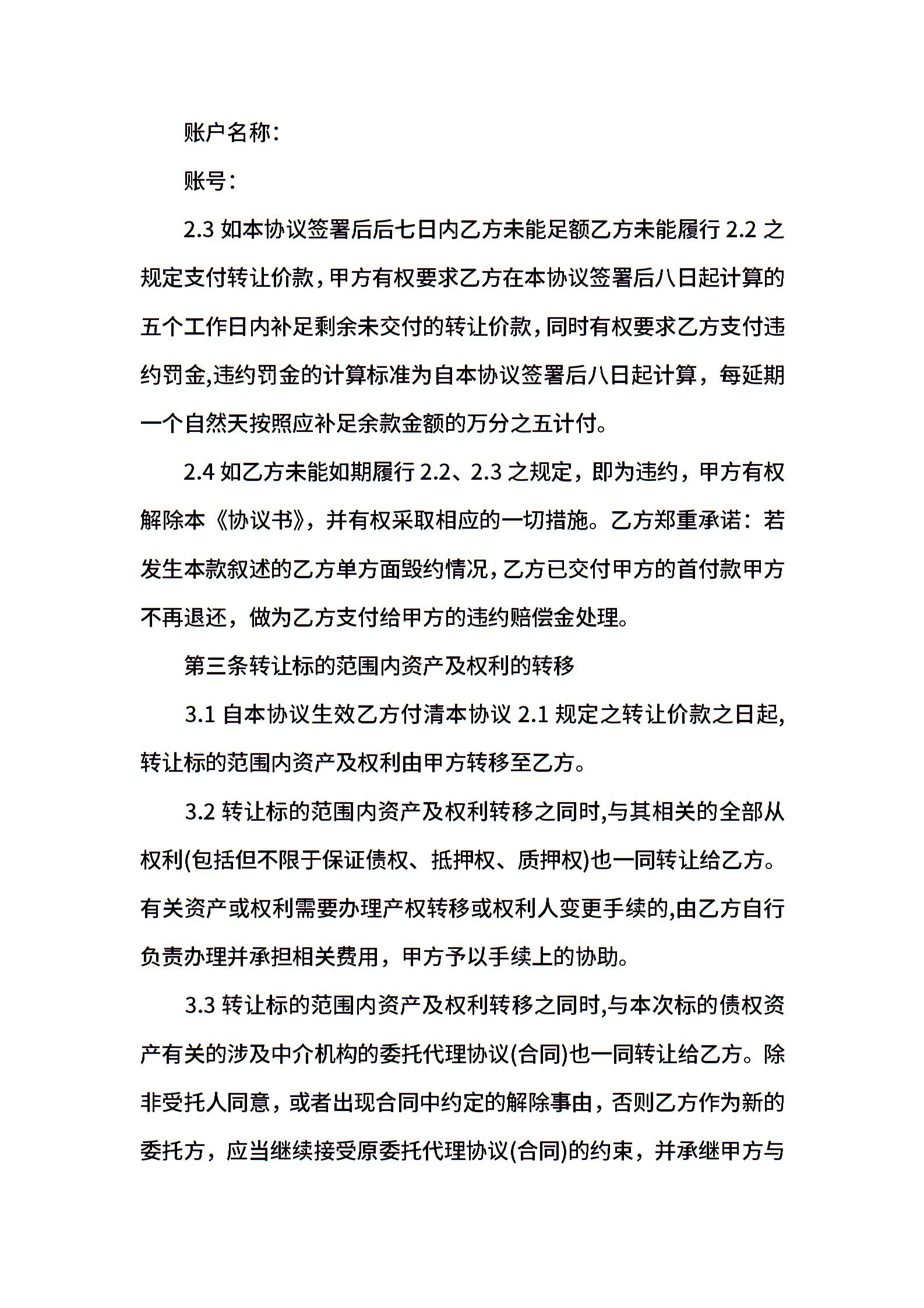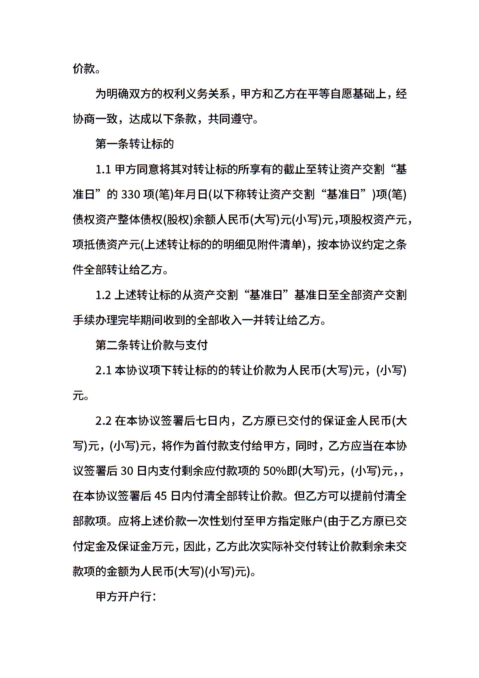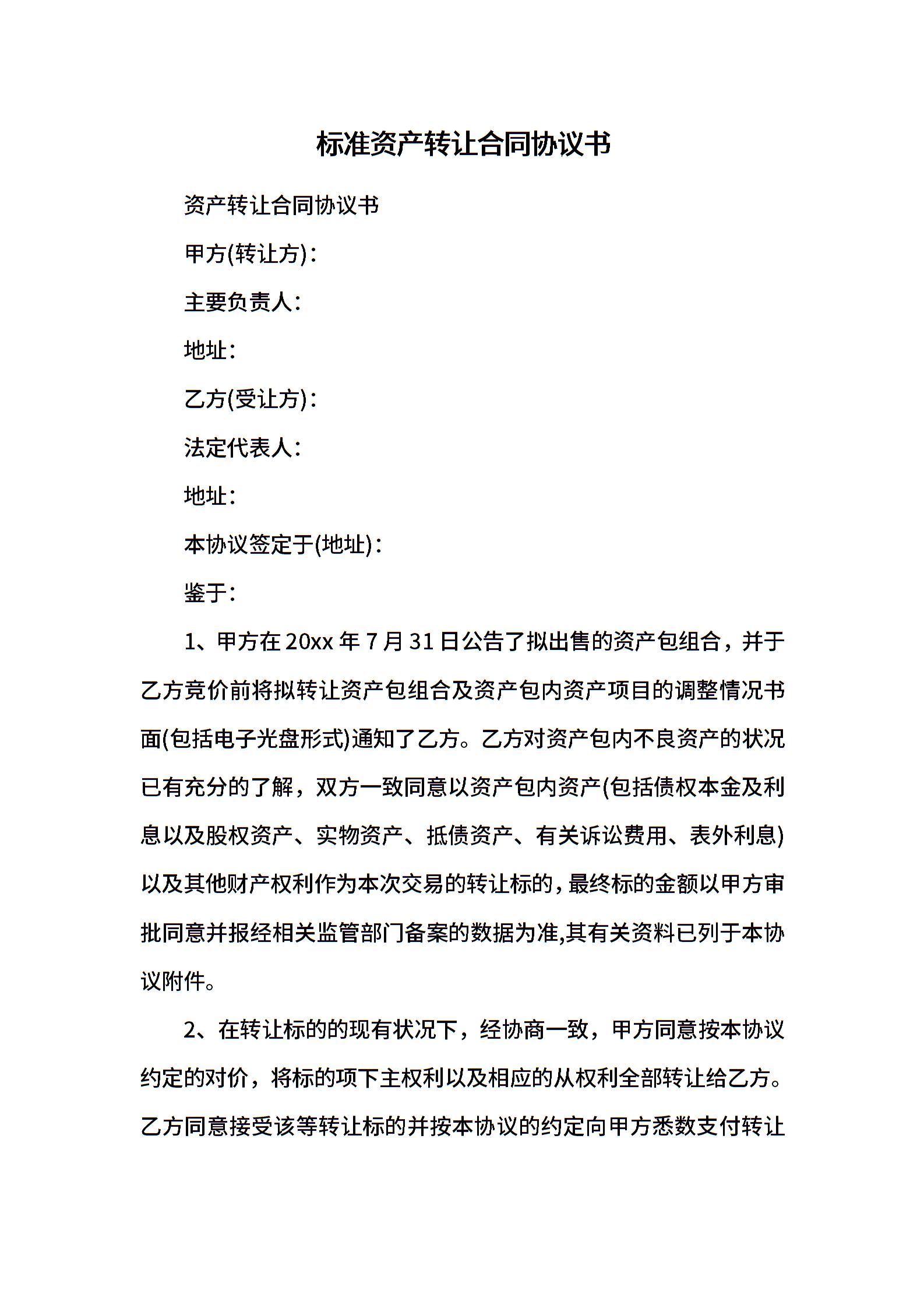 标准资产转让合同协议书