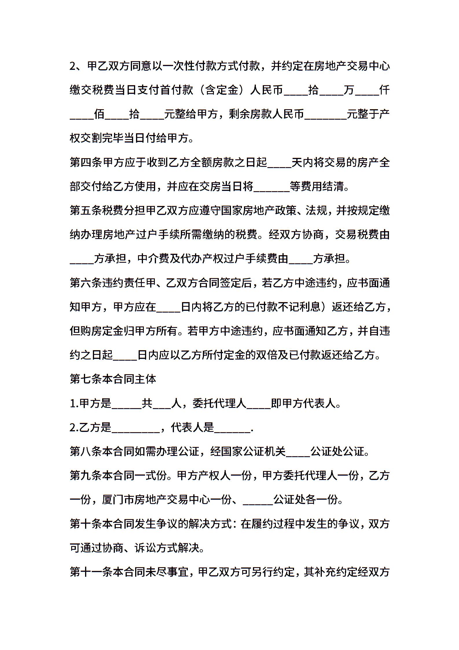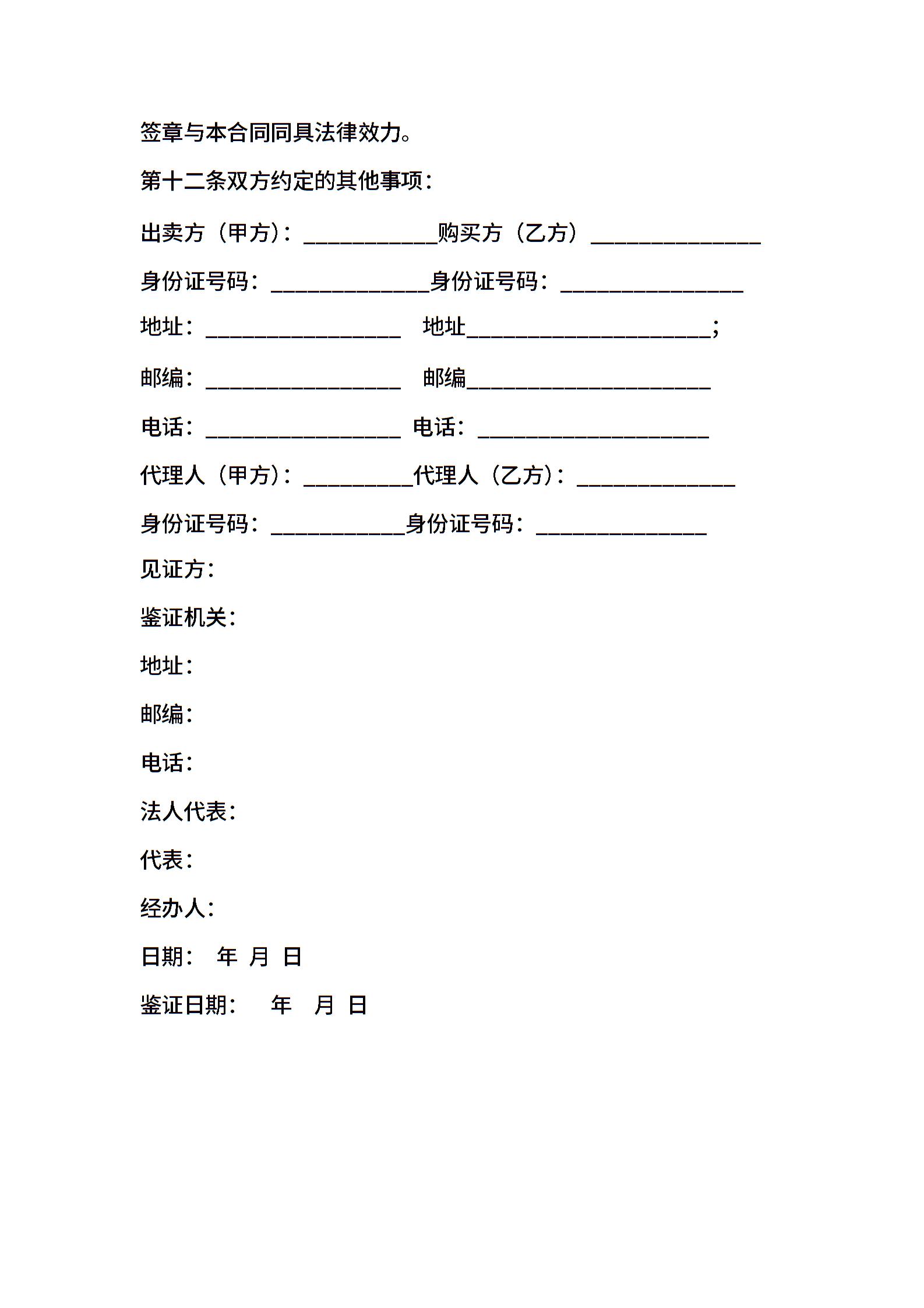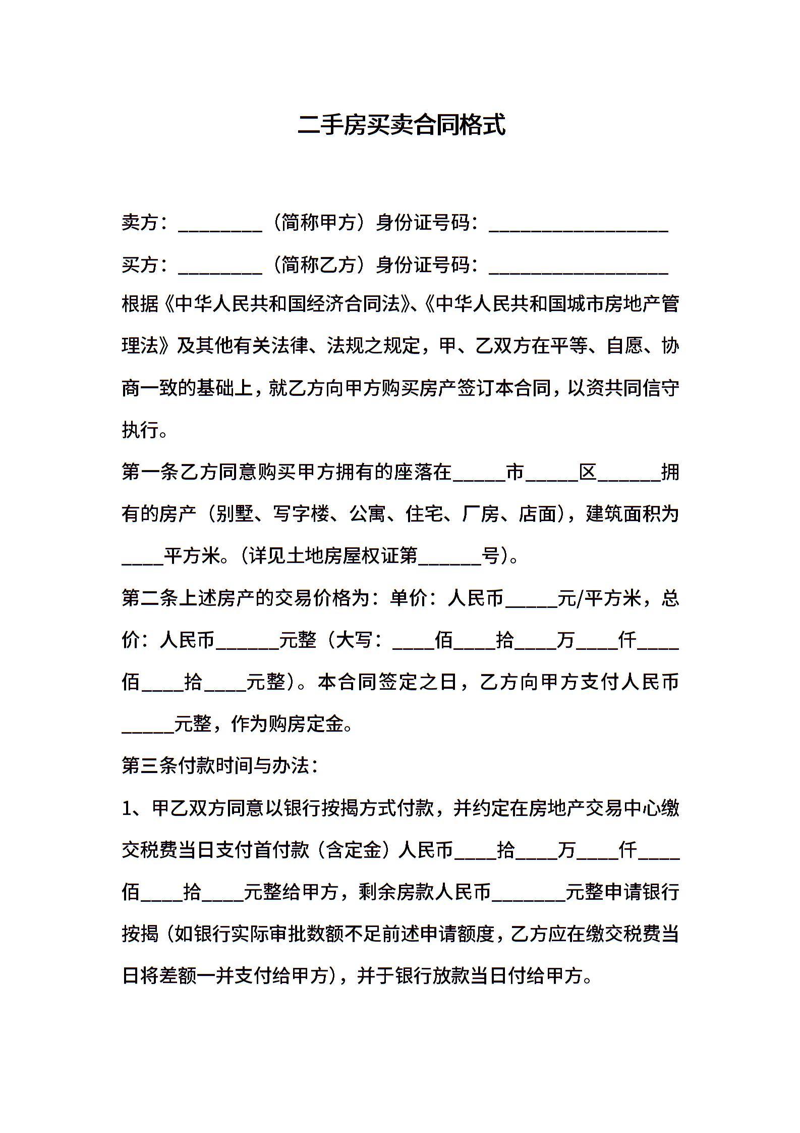 二手房买卖合同格式