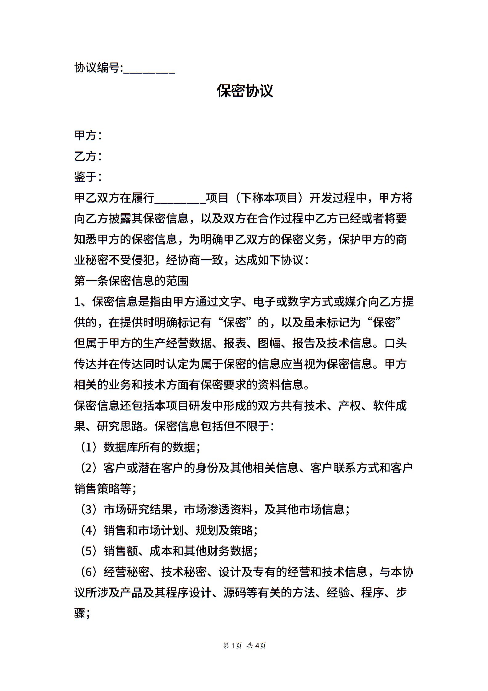 其他-保密协议(简明版)- 优