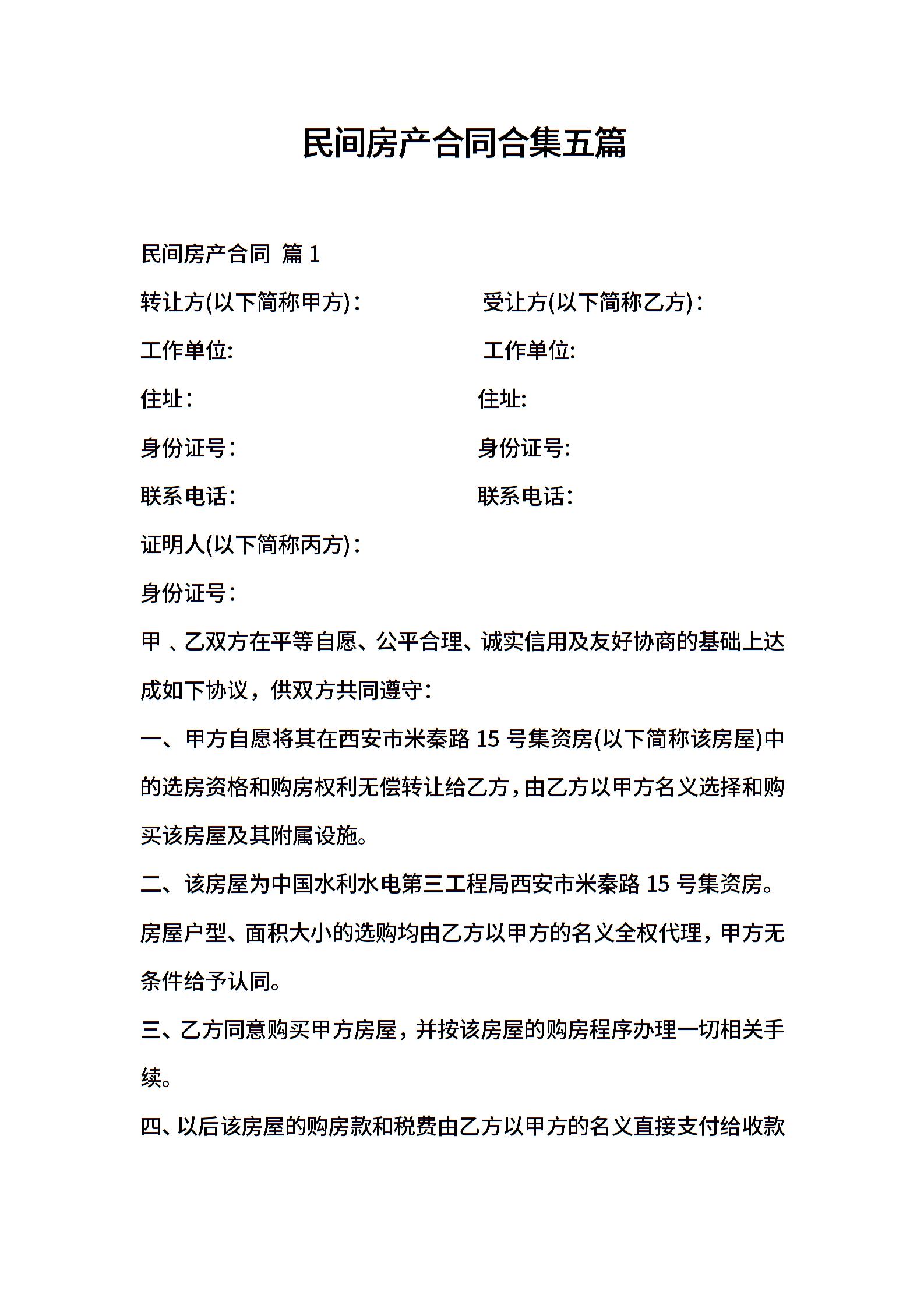 民间房产合同合集五篇