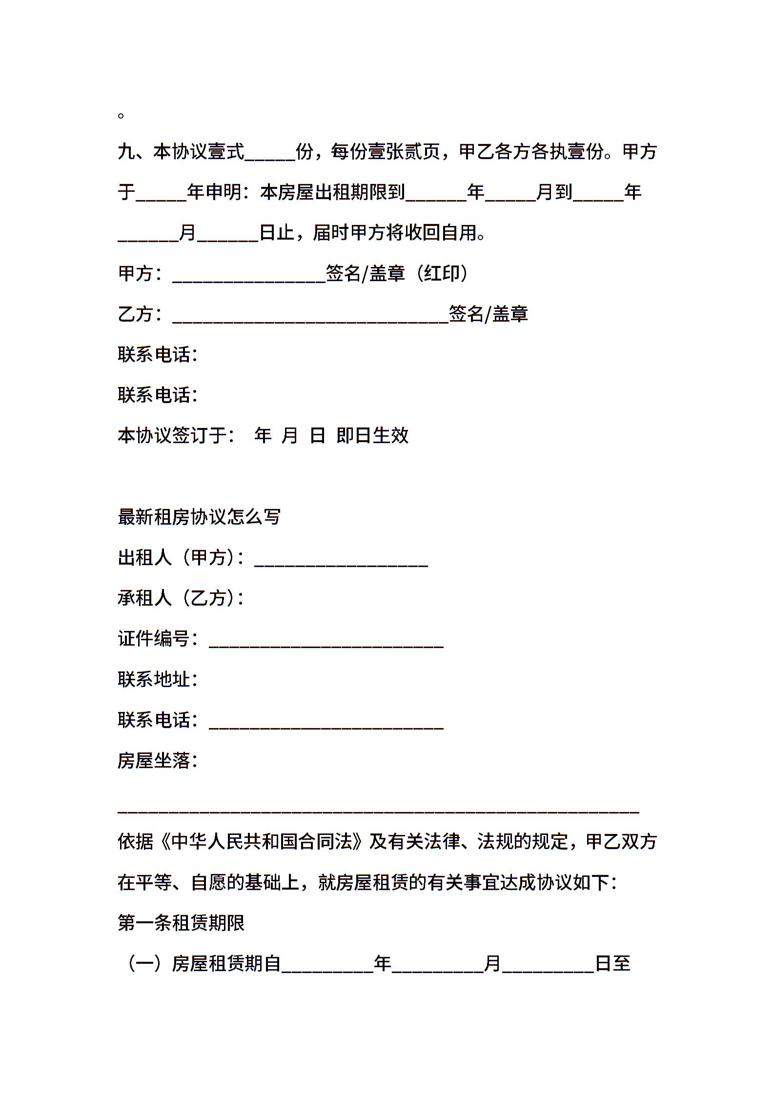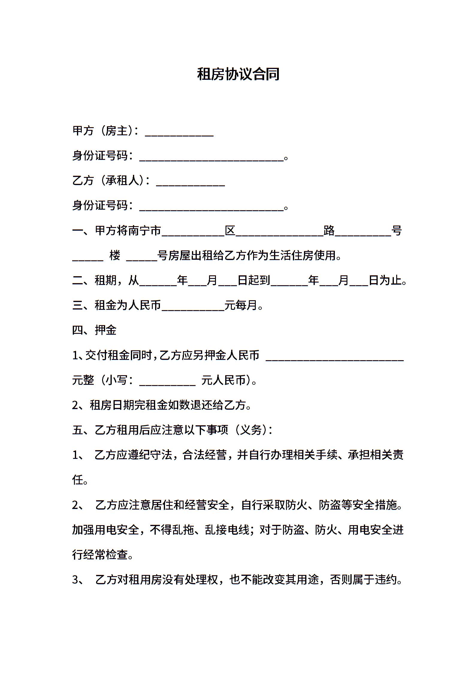 租房协议合同
