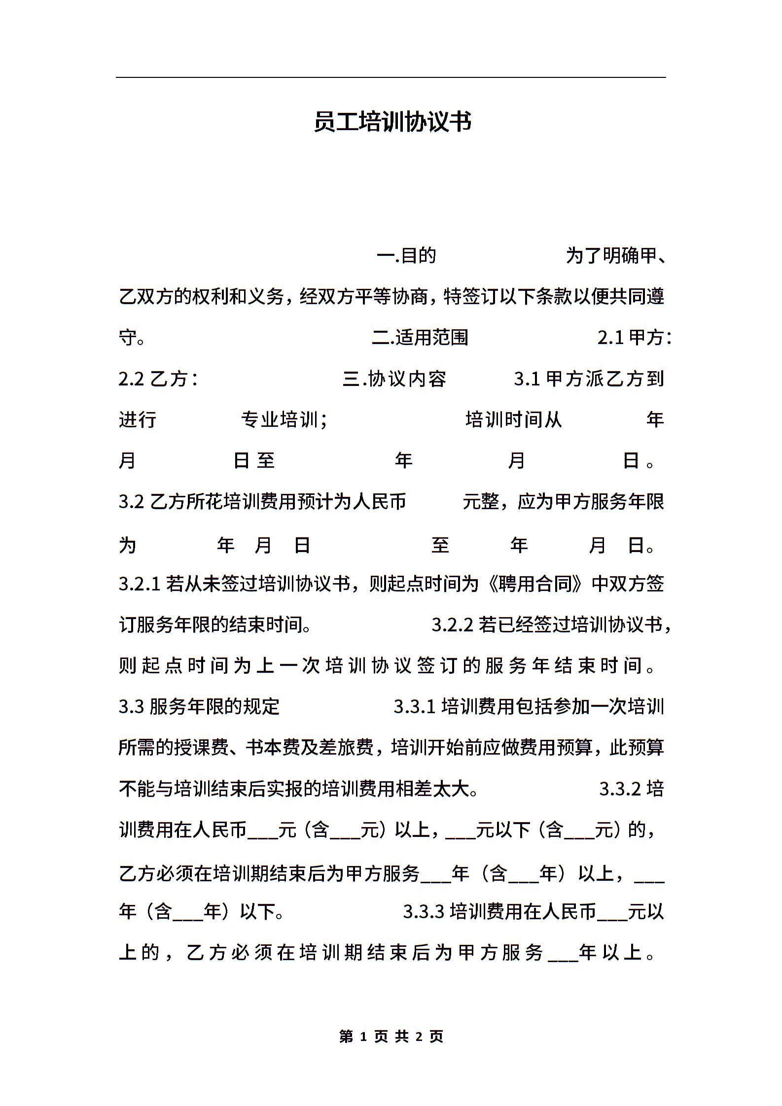 • 分类 培训协议