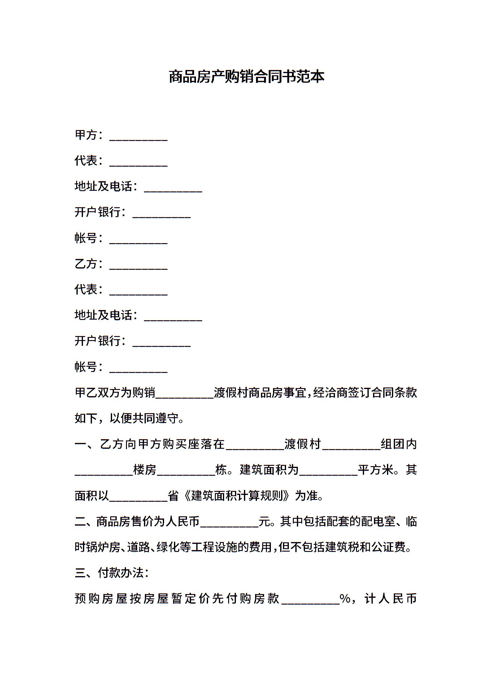 商品房产购销合同书范本