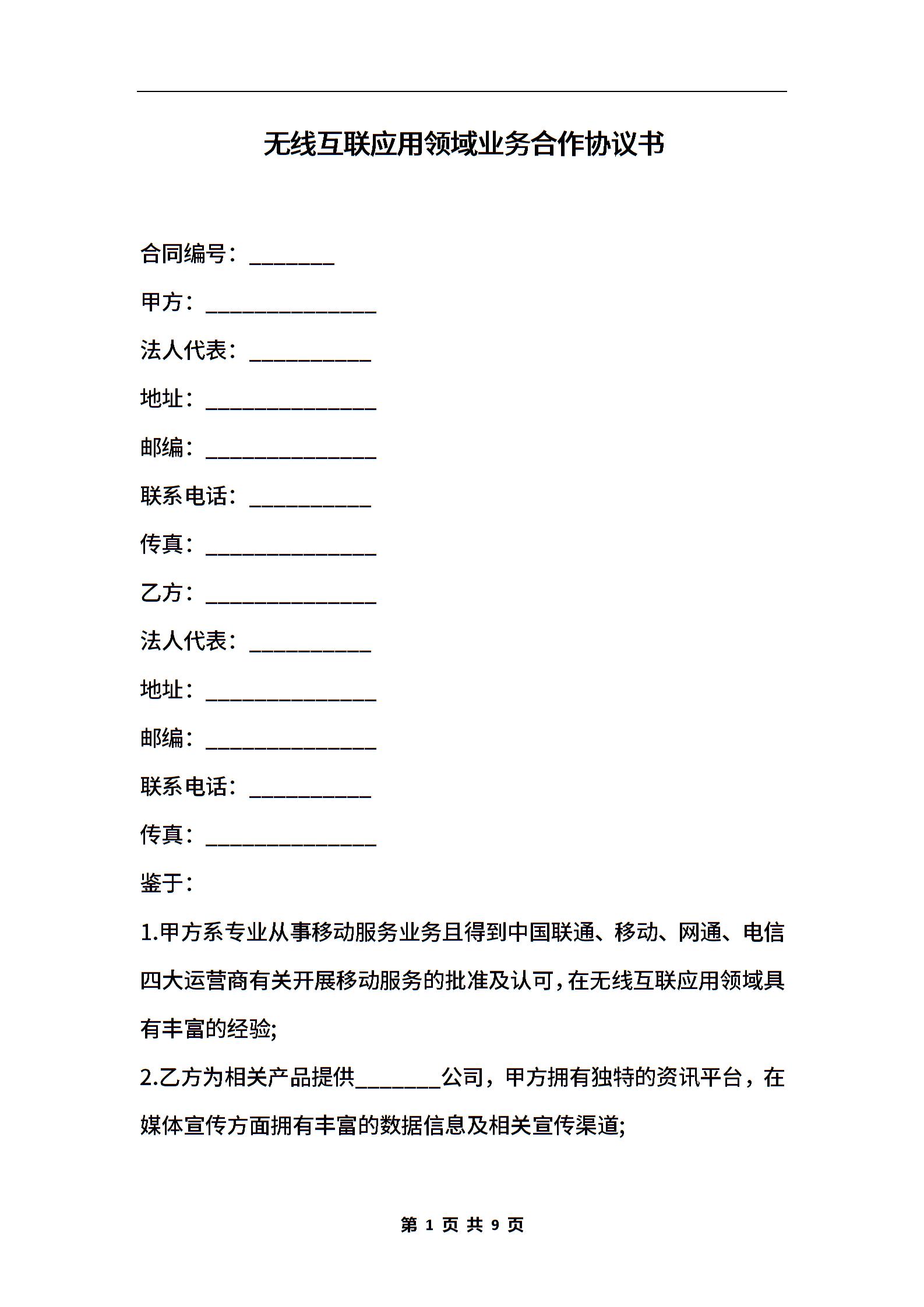 当前位置:量子办公 > 合同模板 > 合作合同 >