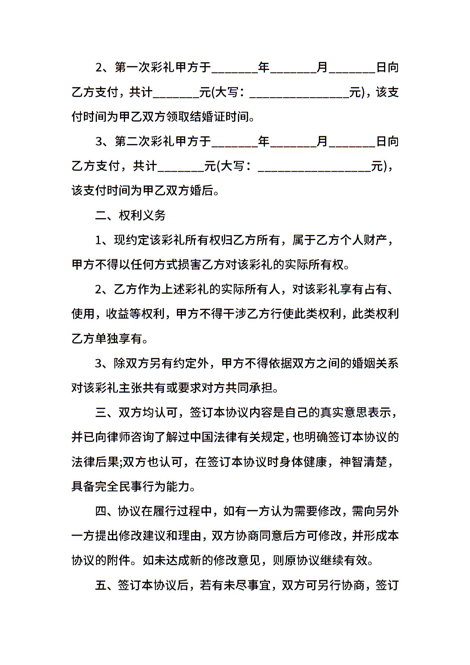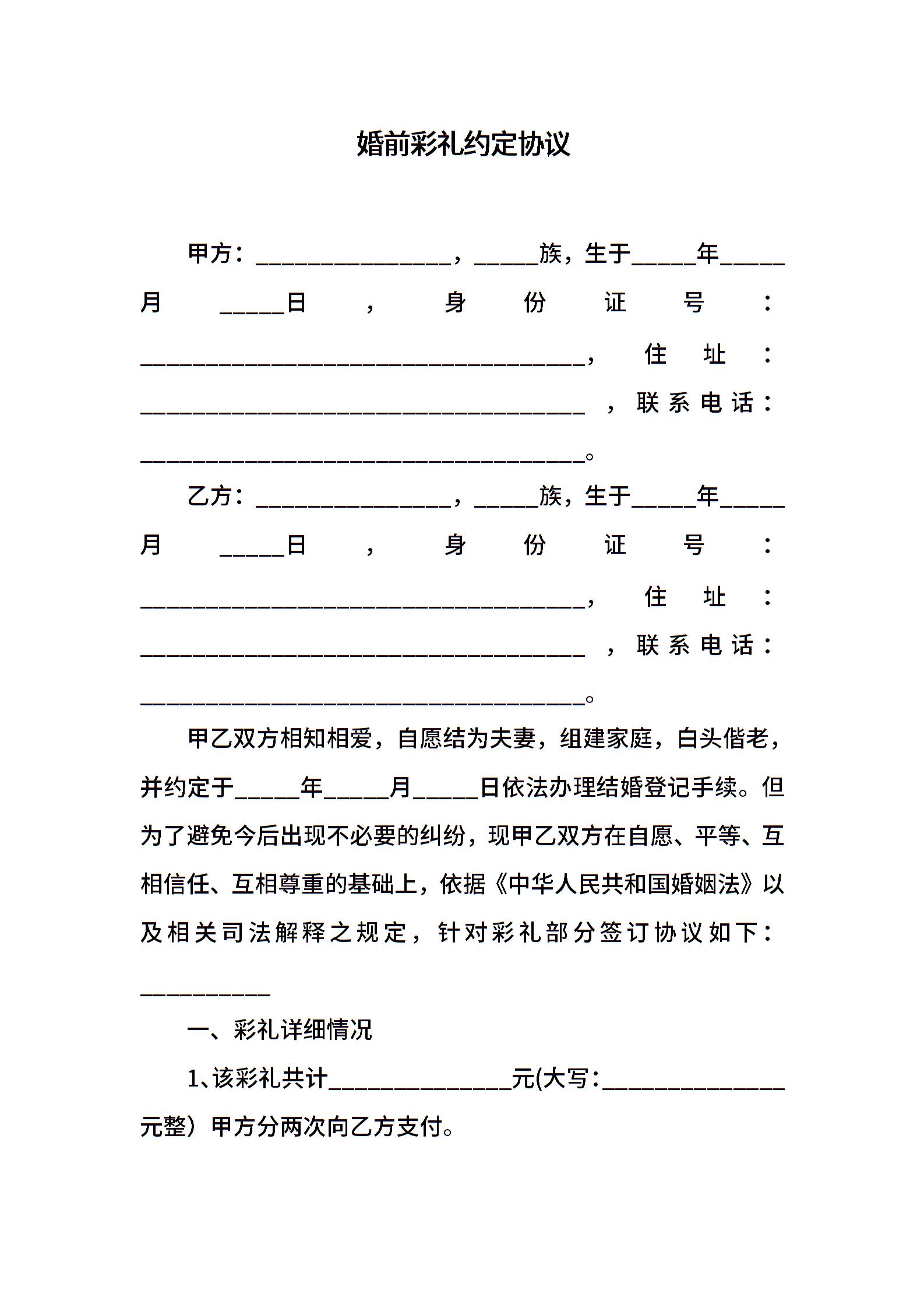 婚前彩礼约定协议