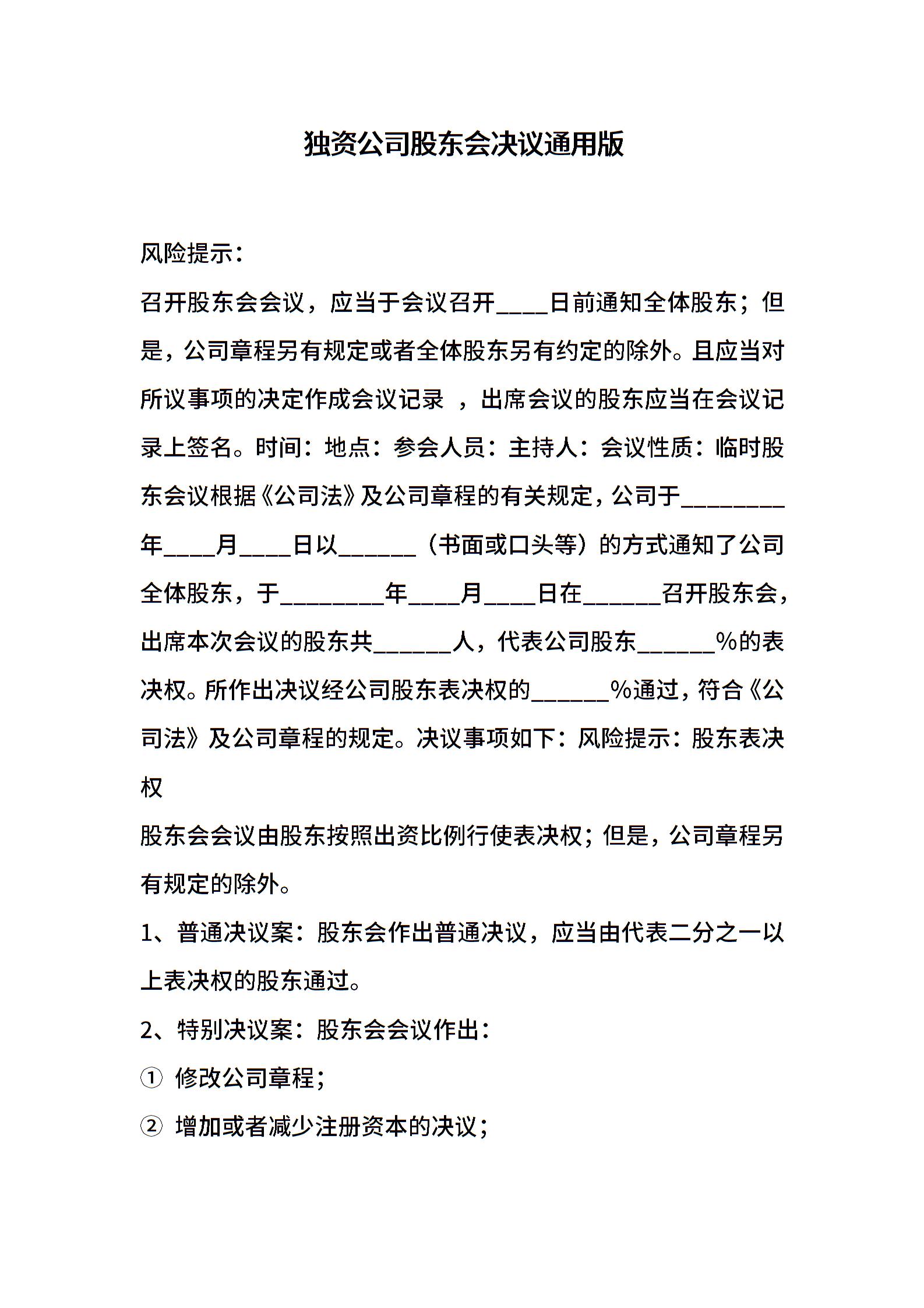 当前位置:量子办公 > 合同模板 > 股东会决议 >