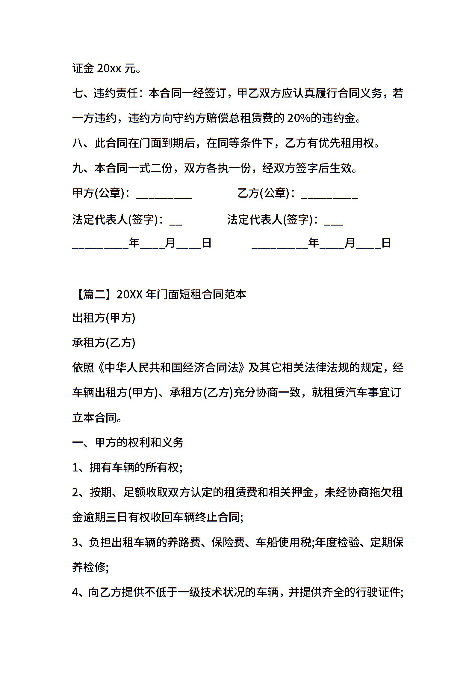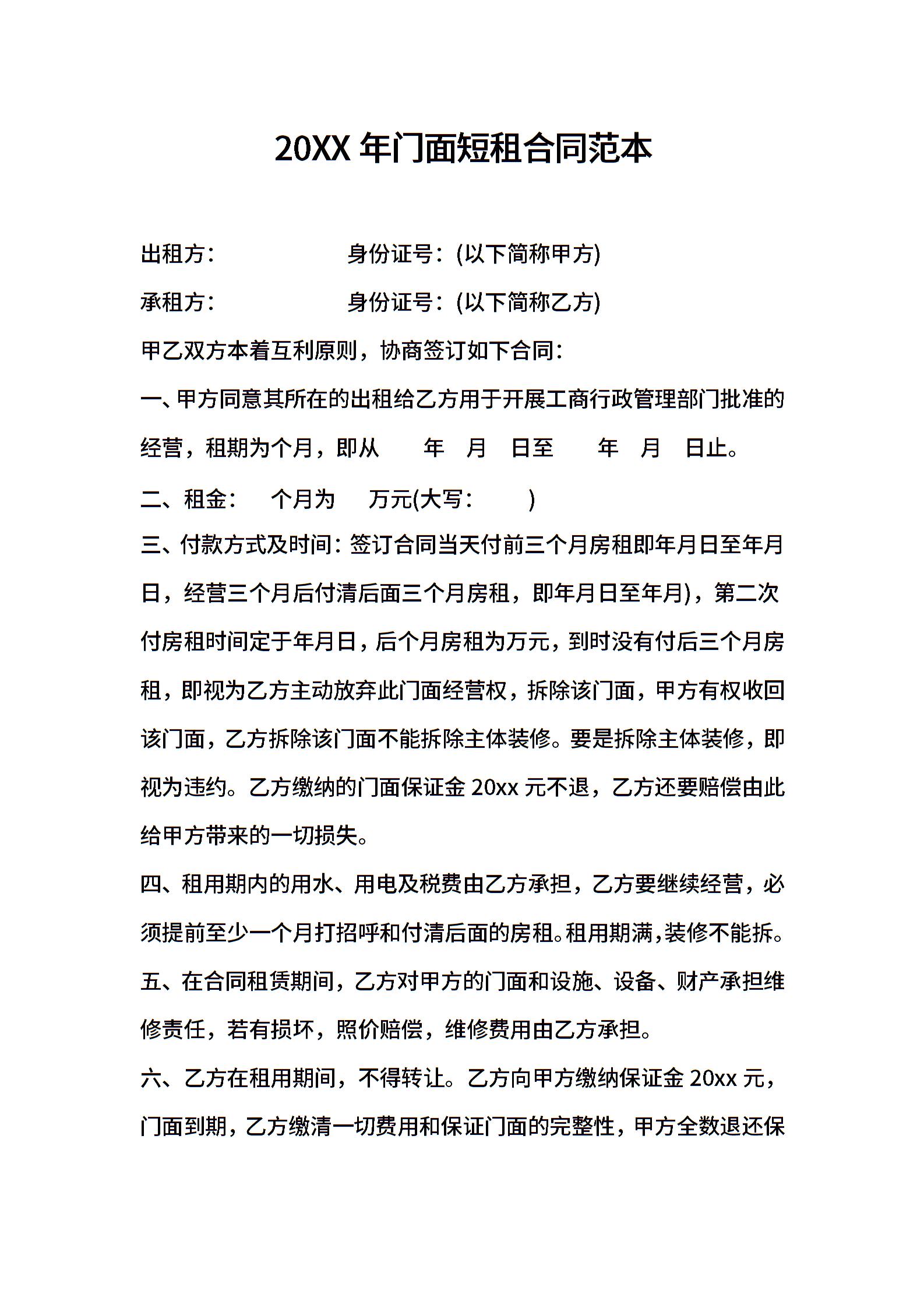 2021年门面短租合同范本