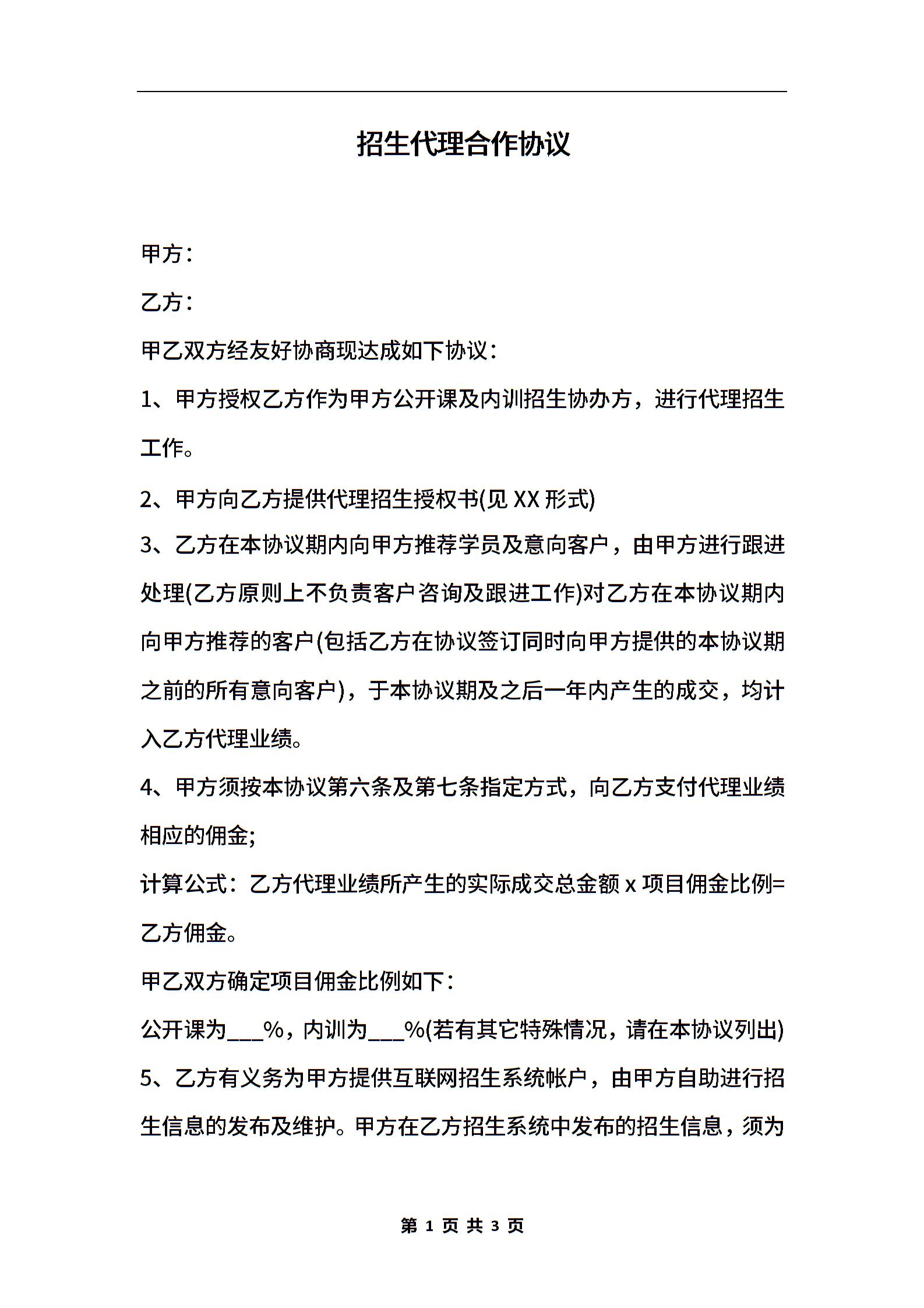 招生代理合作协议