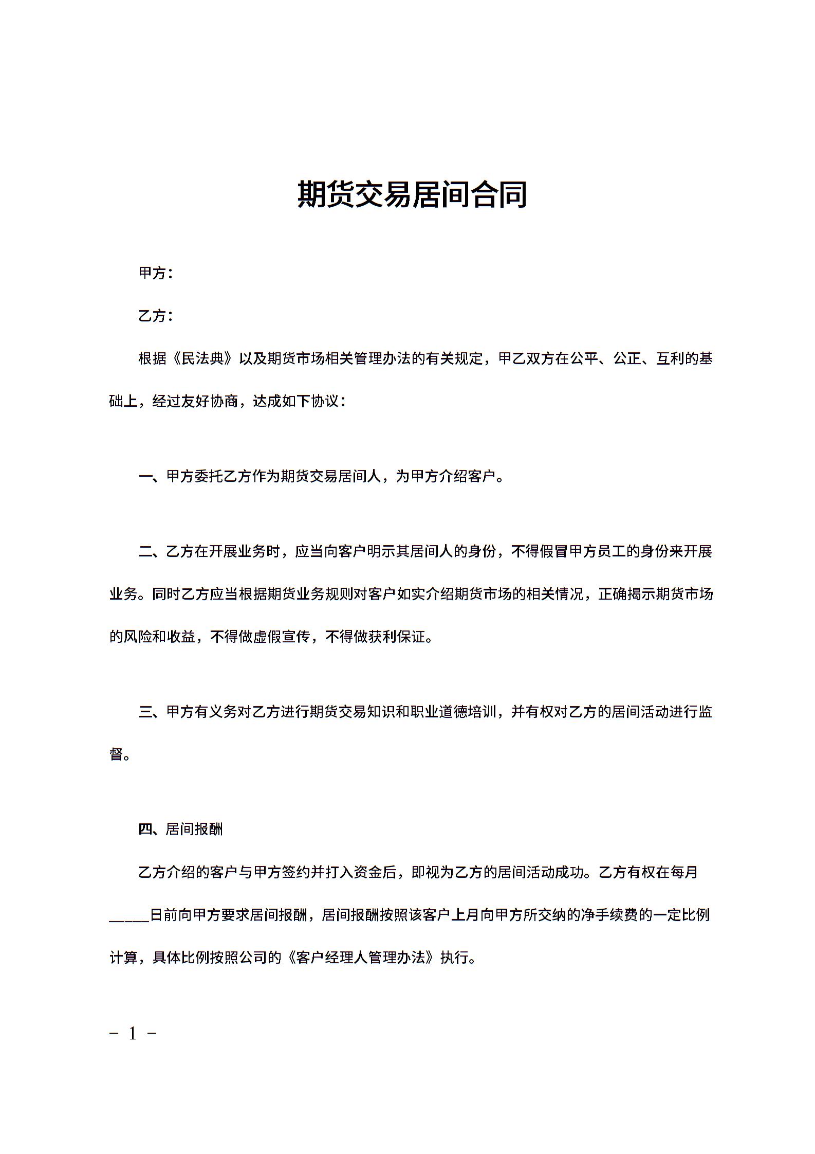 期货交易居间合同范文