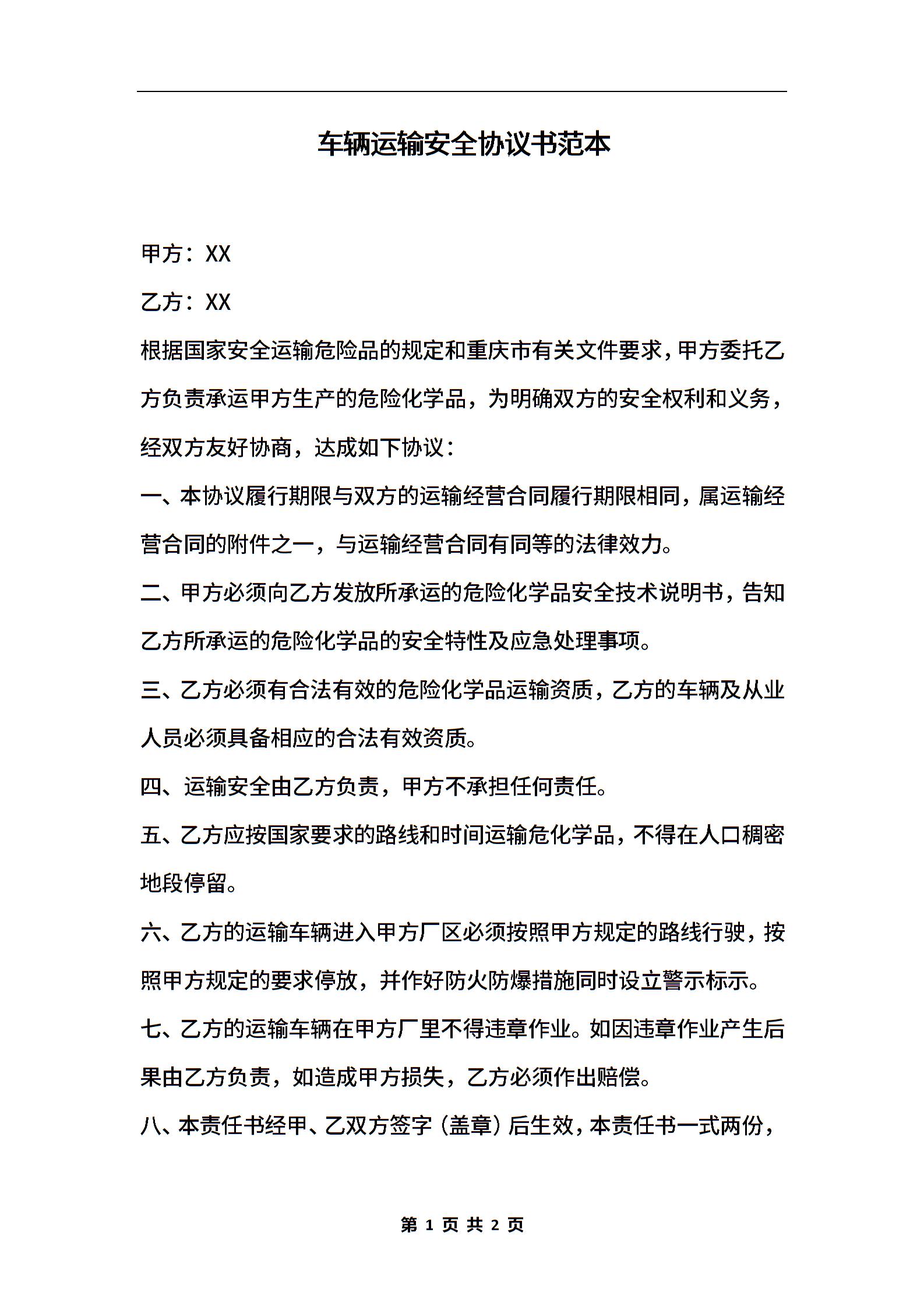 车辆运输安全协议书范本