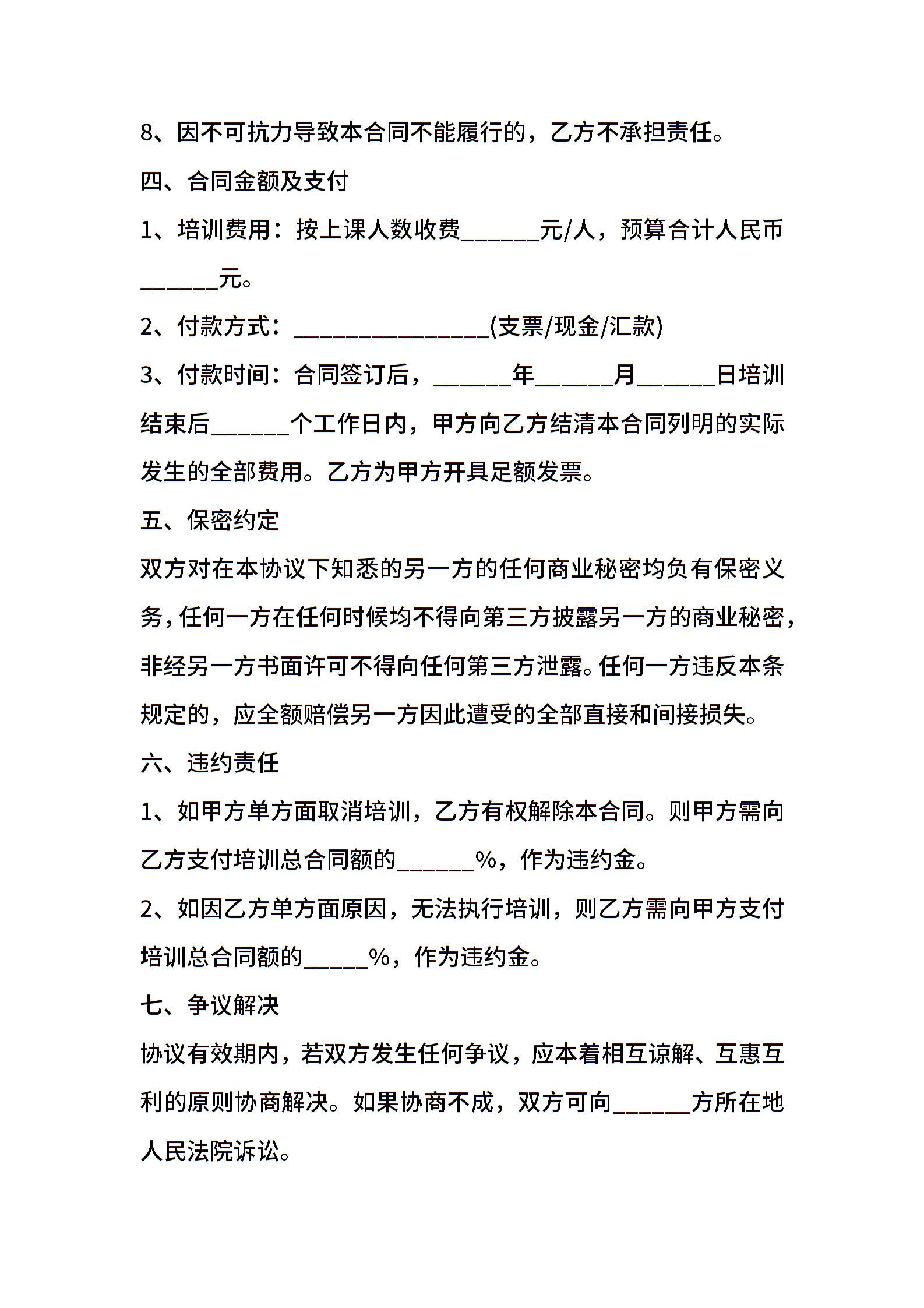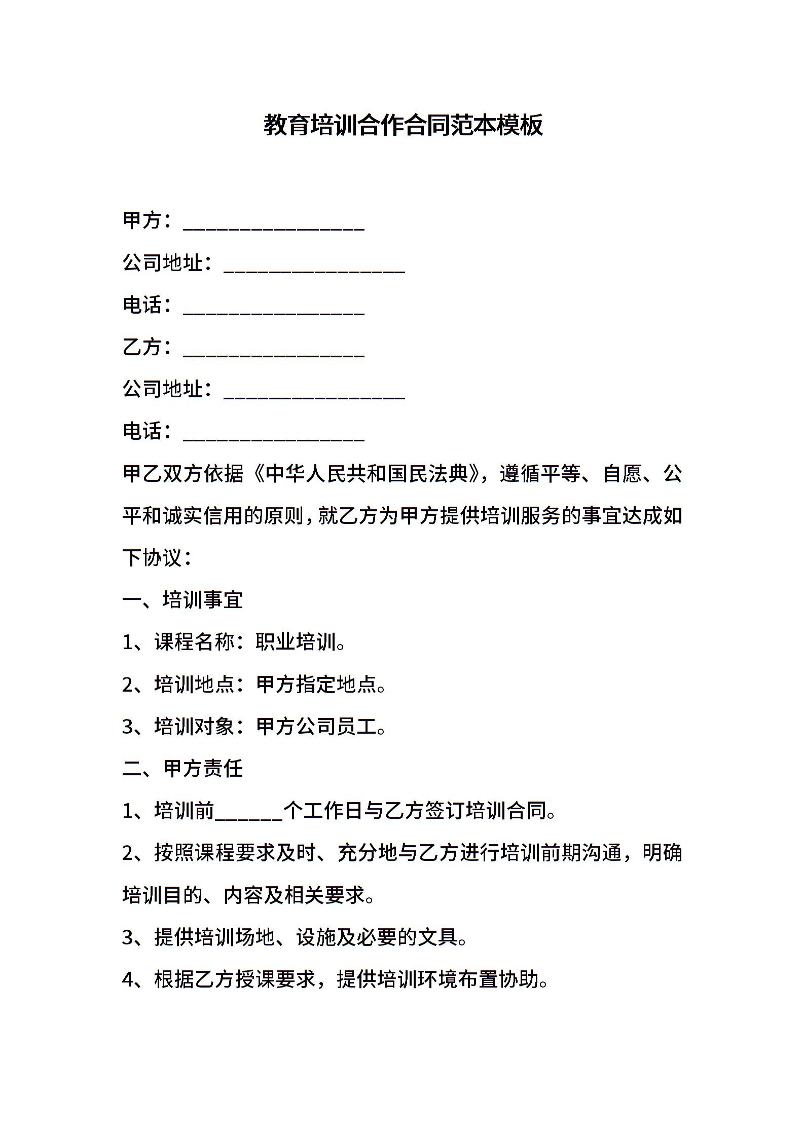 教育培训合作合同范本模板
