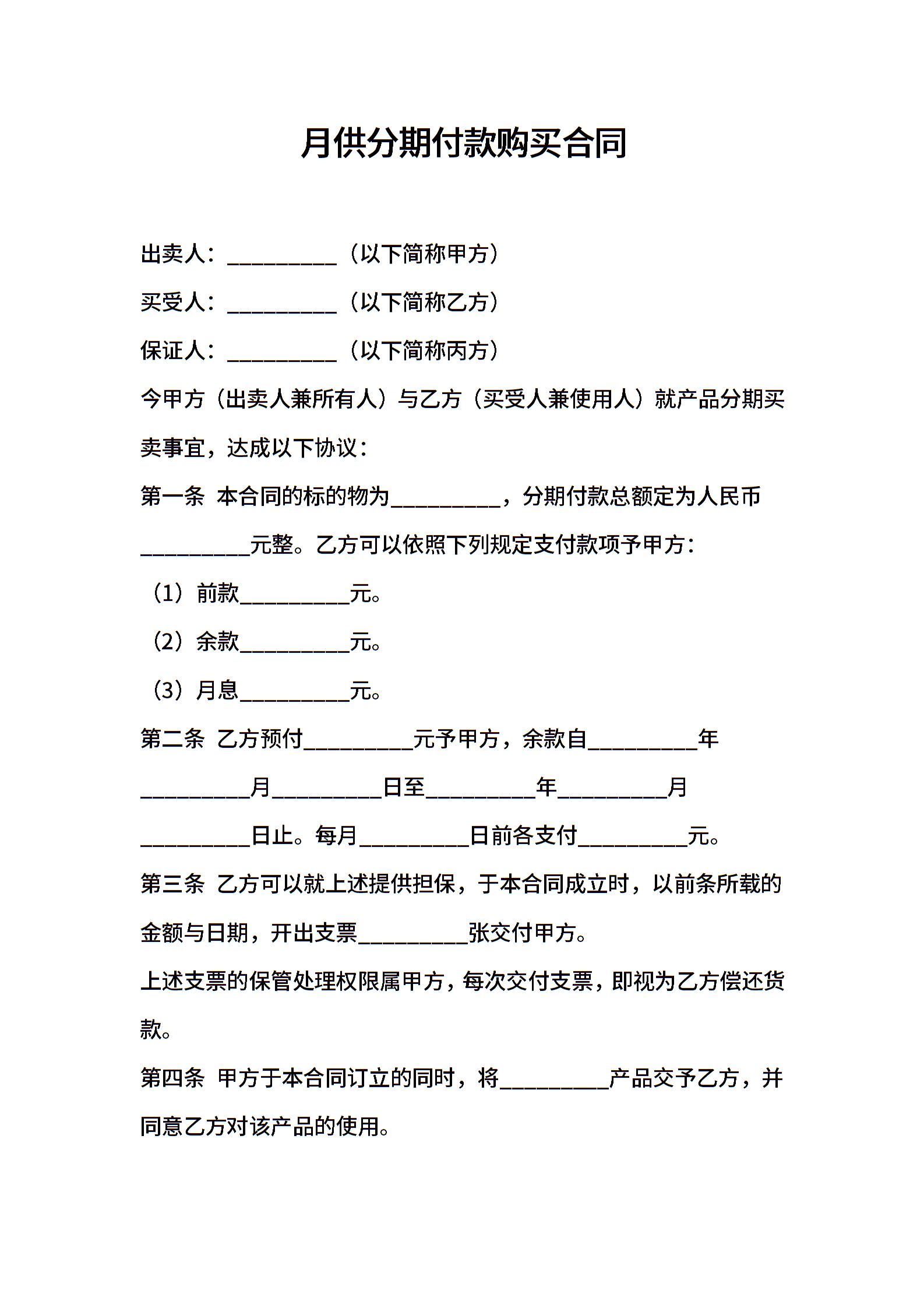 月供分期付款购买合同