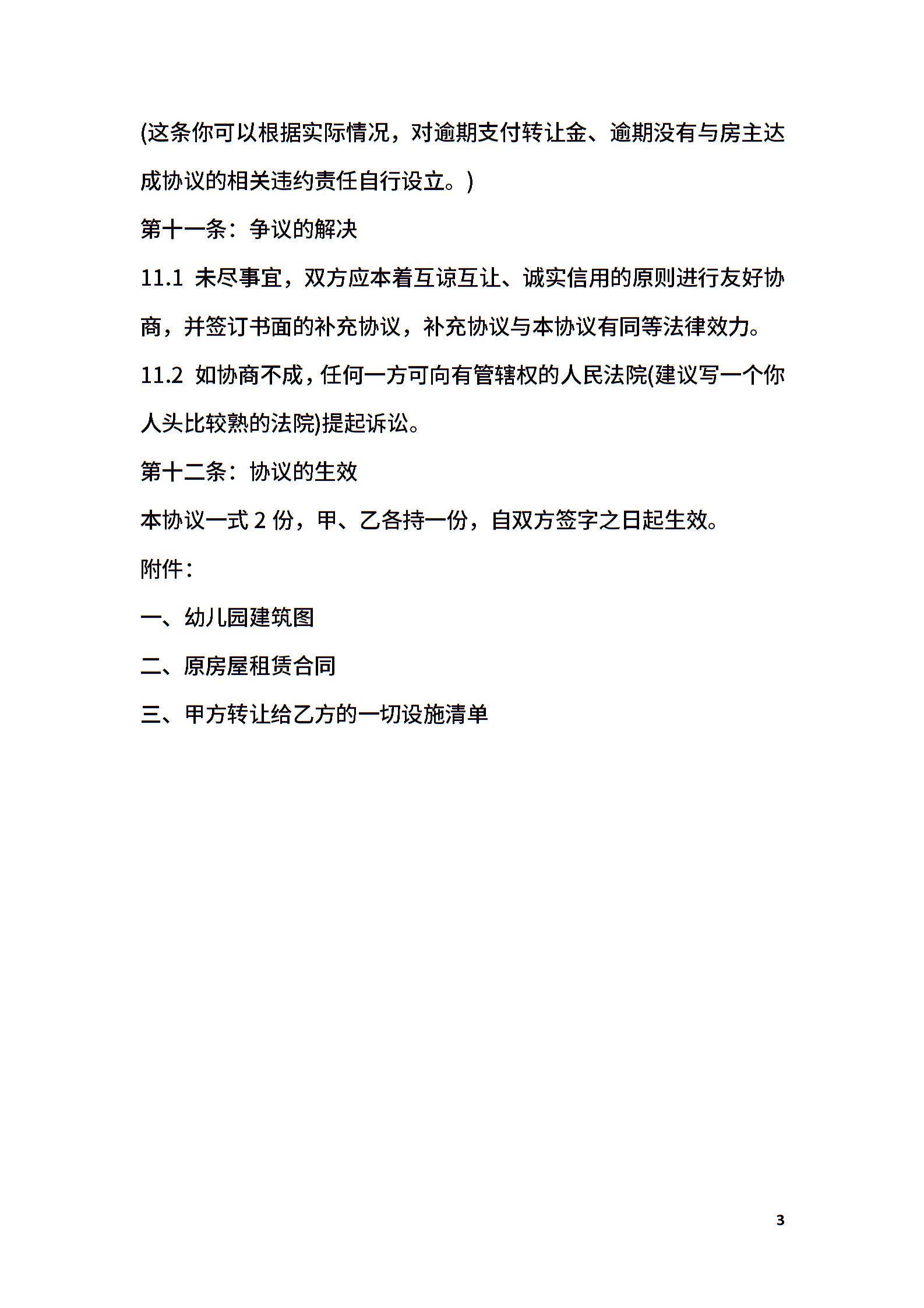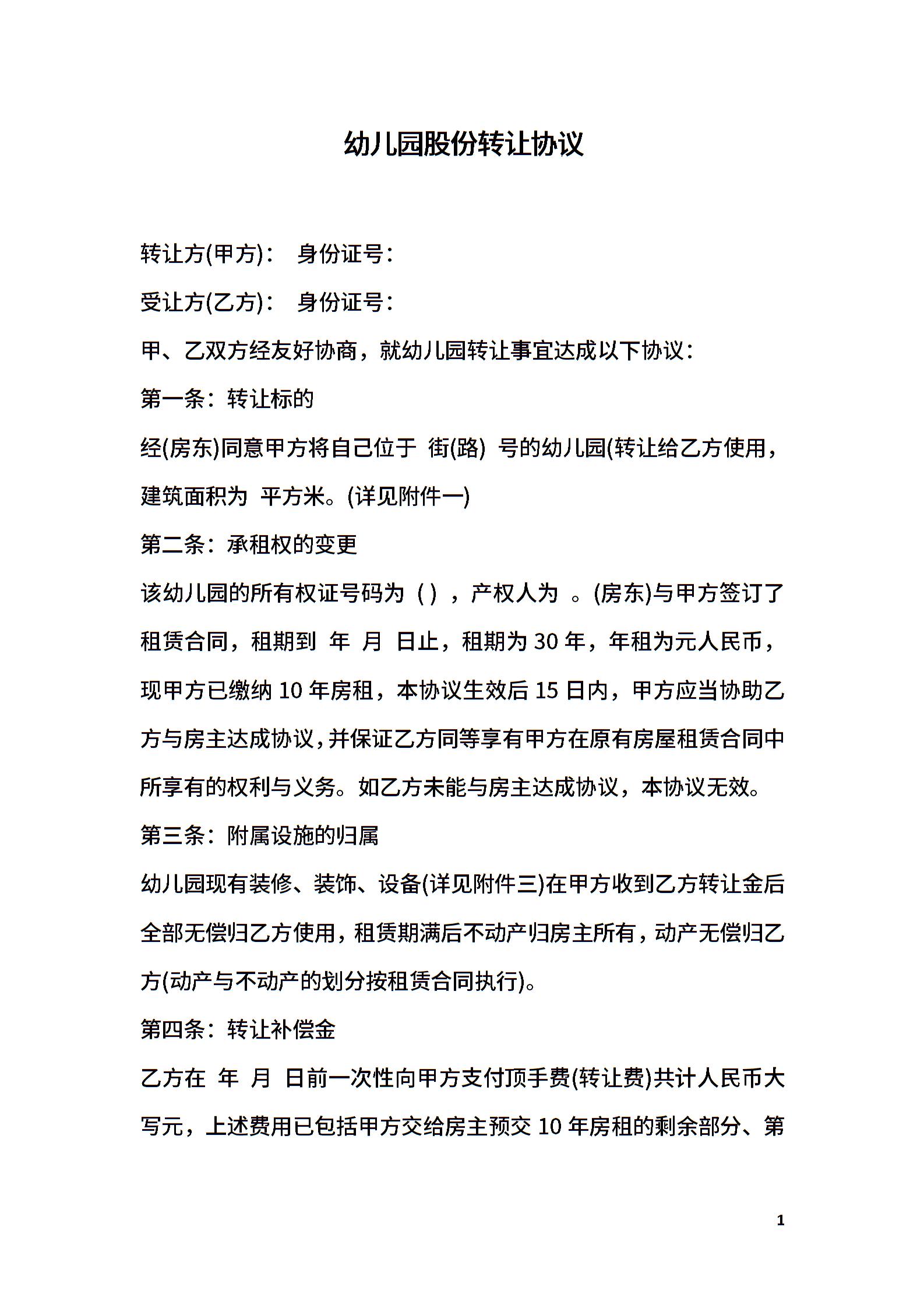 幼儿园股份转让协议