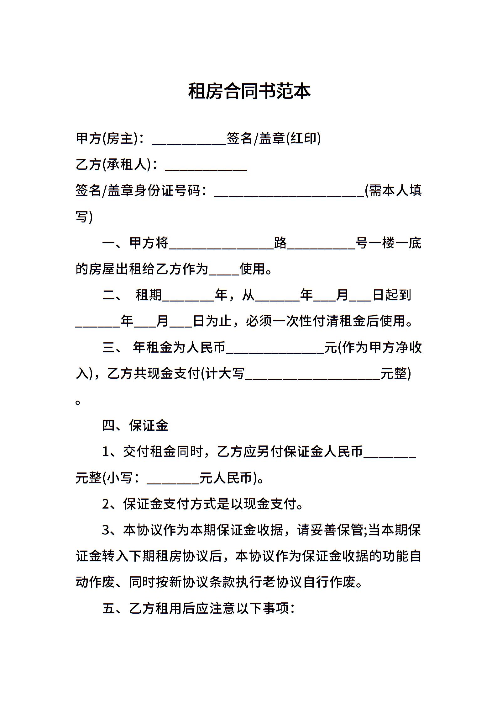 租房合同书范本