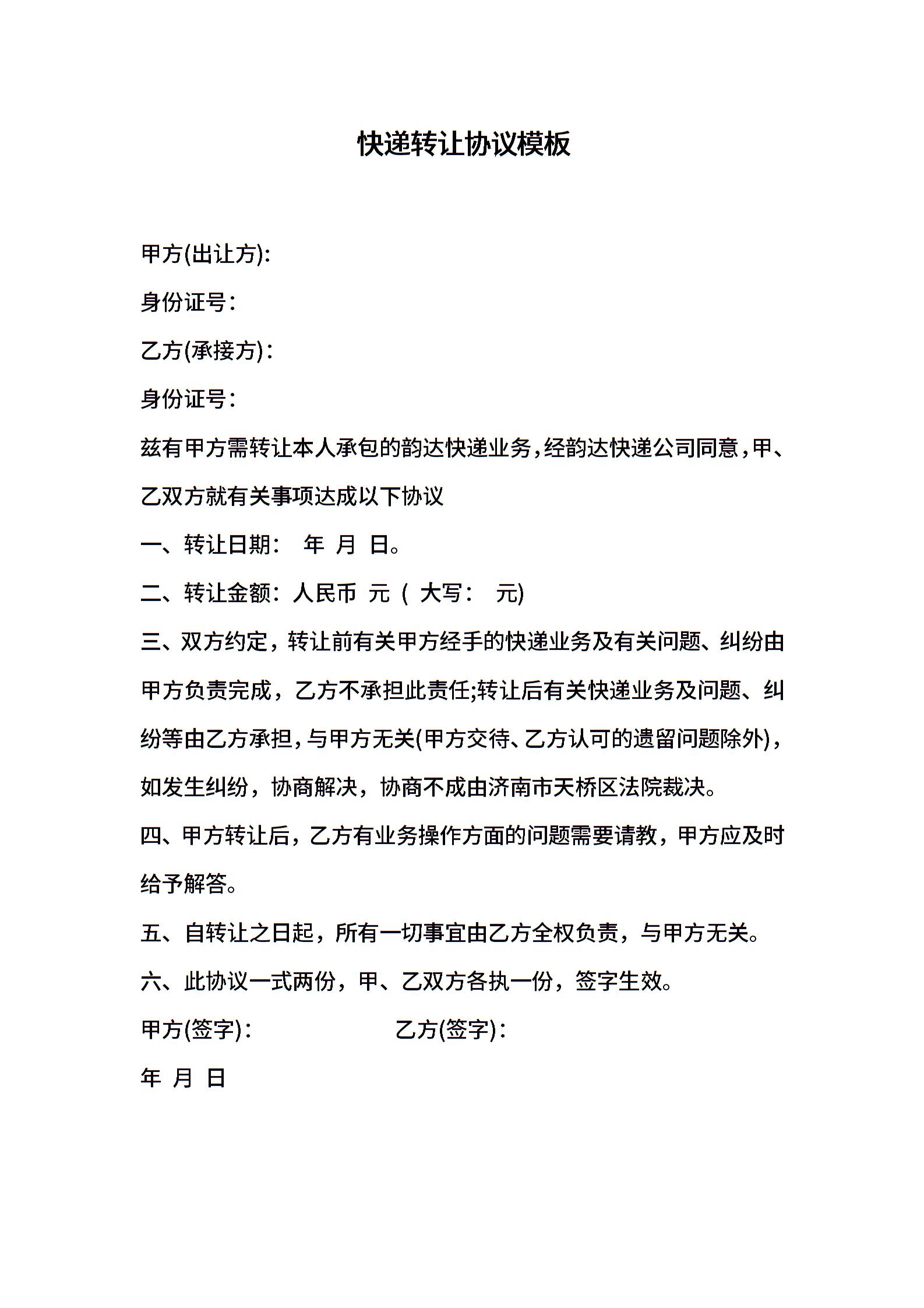 快递转让协议模板