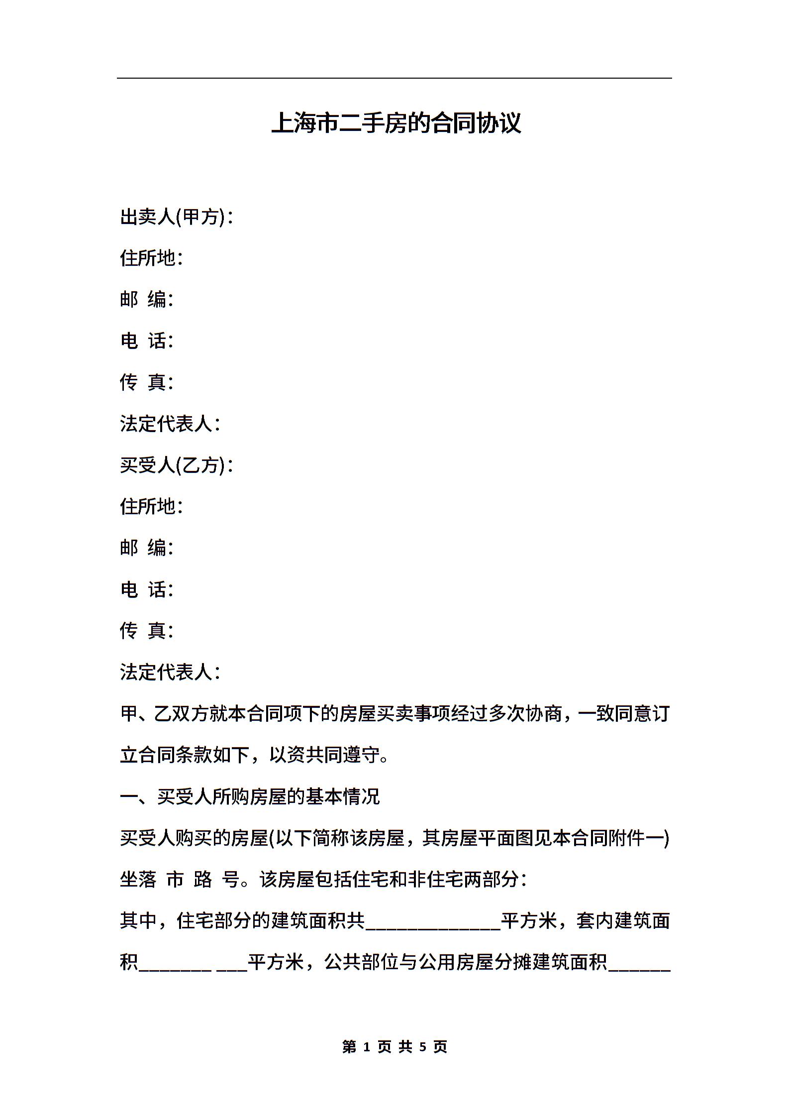 上海市二手房的合同协议