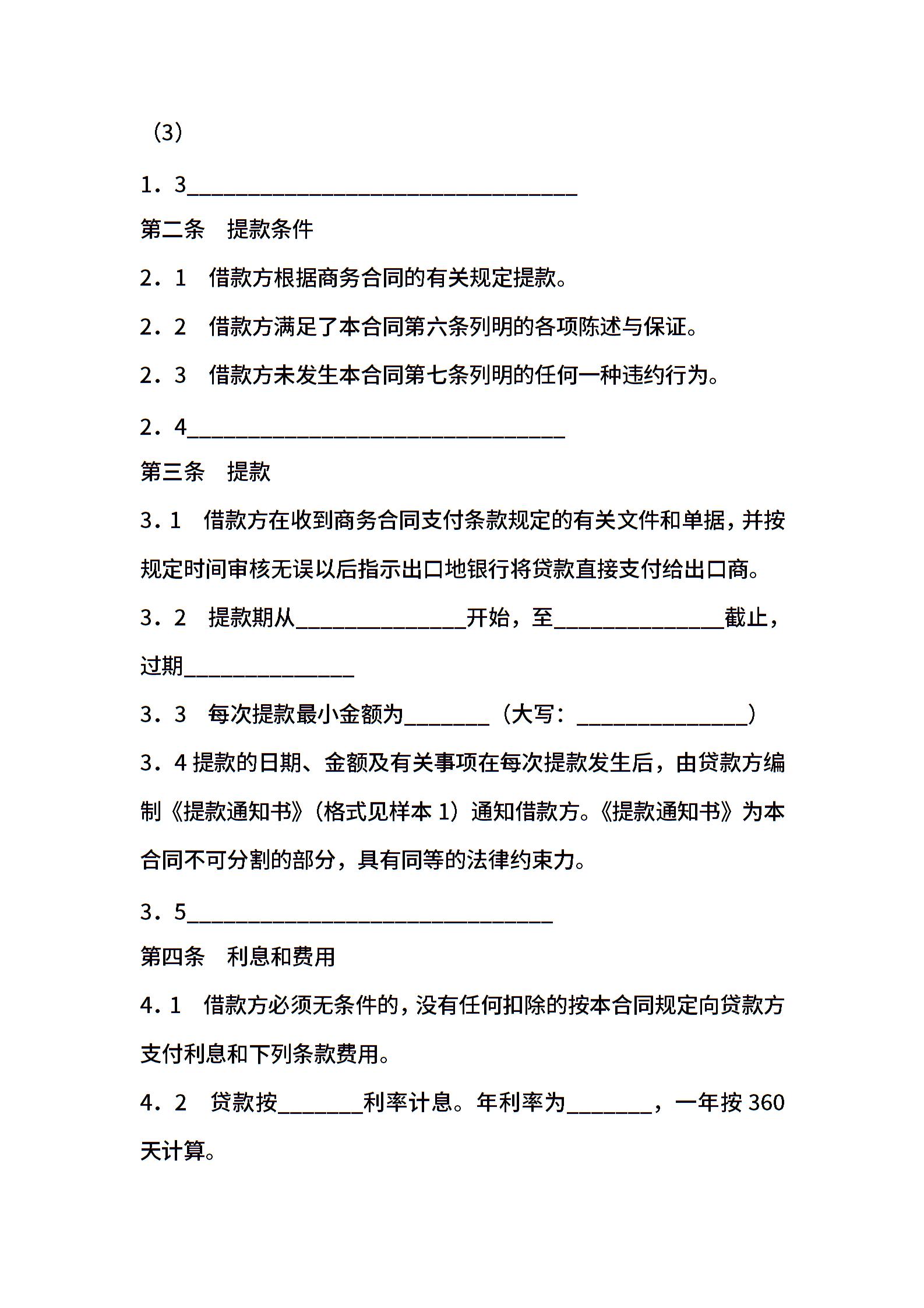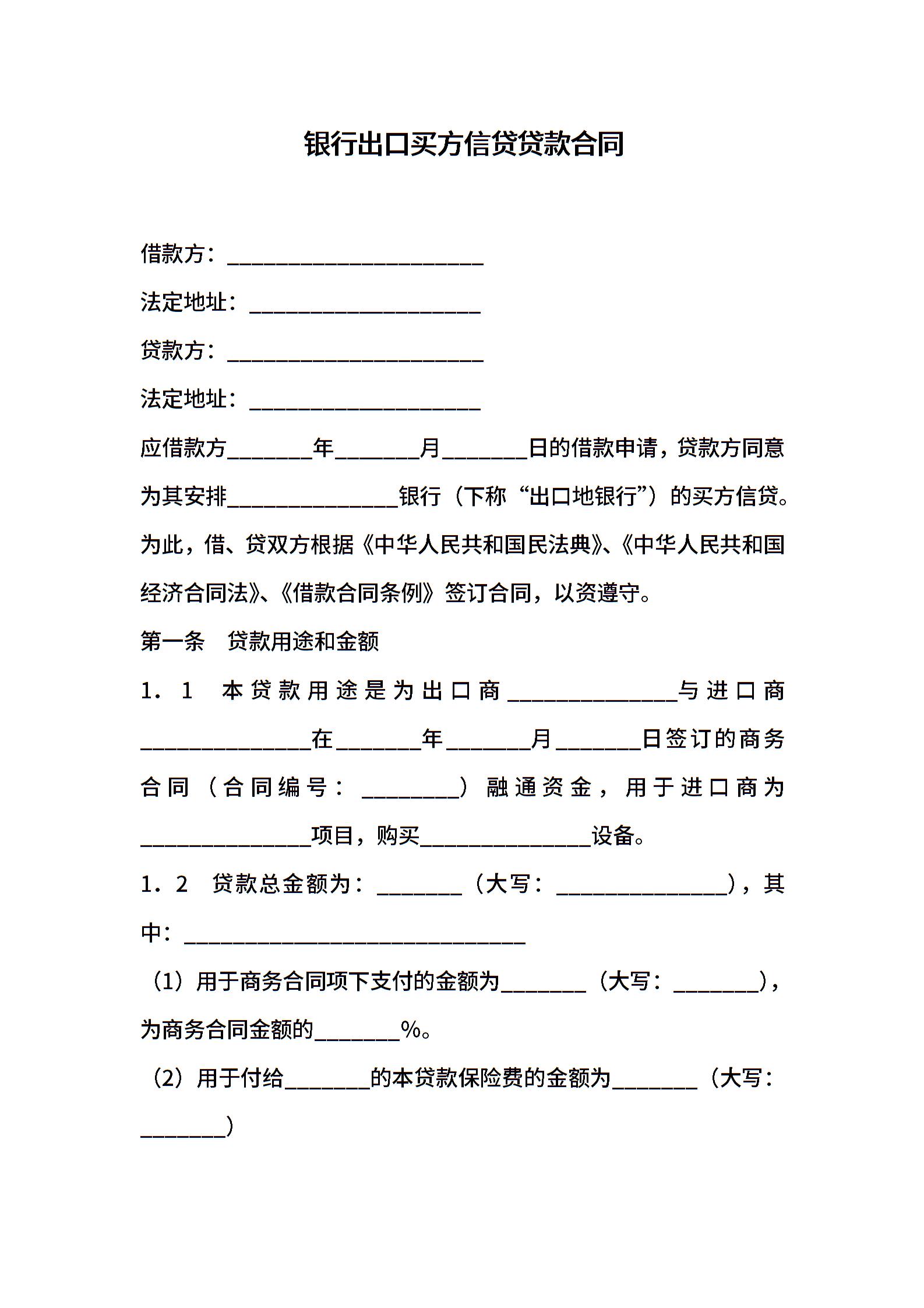 银行出口买方信贷贷款合同