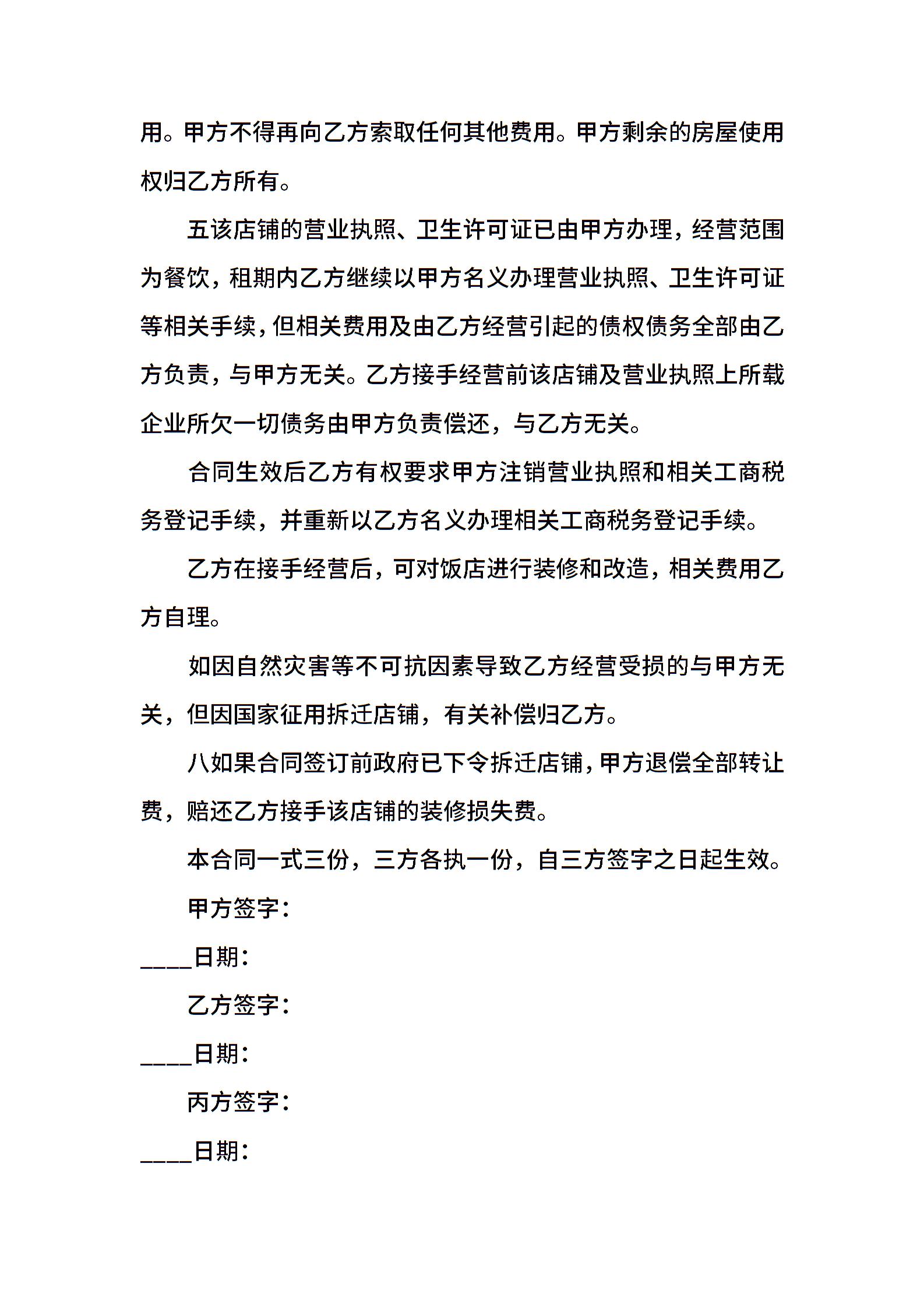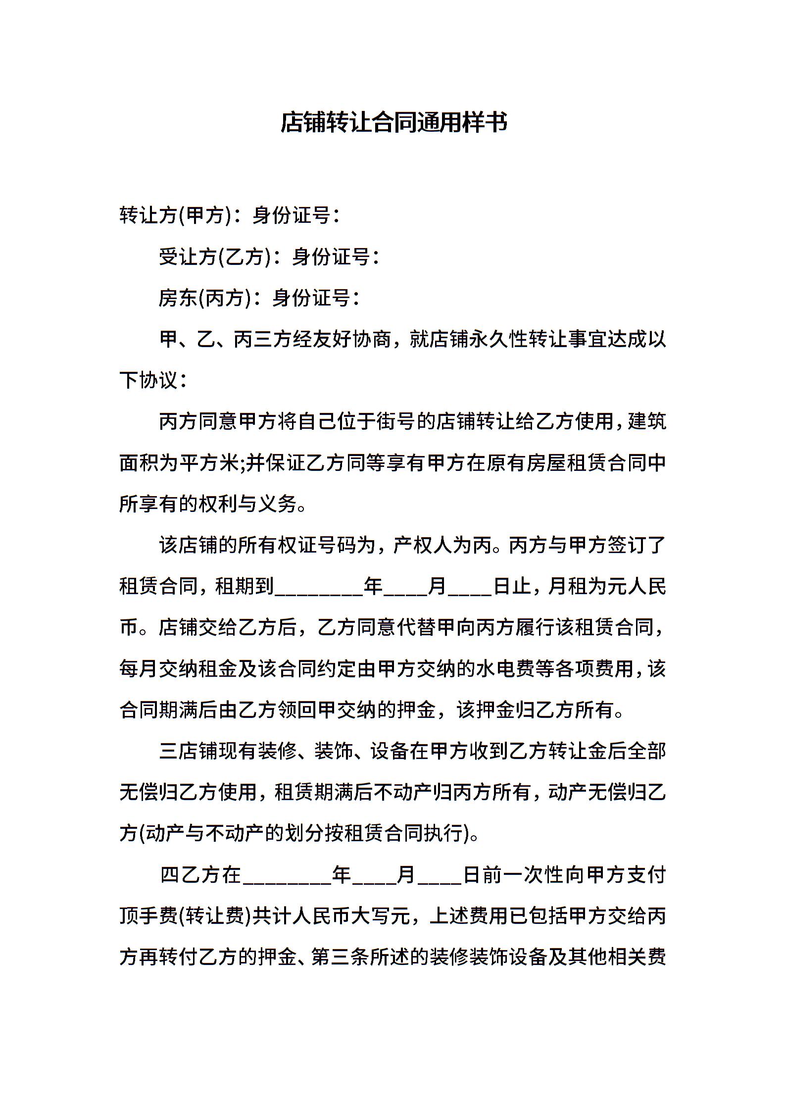 店铺转让合同通用样书