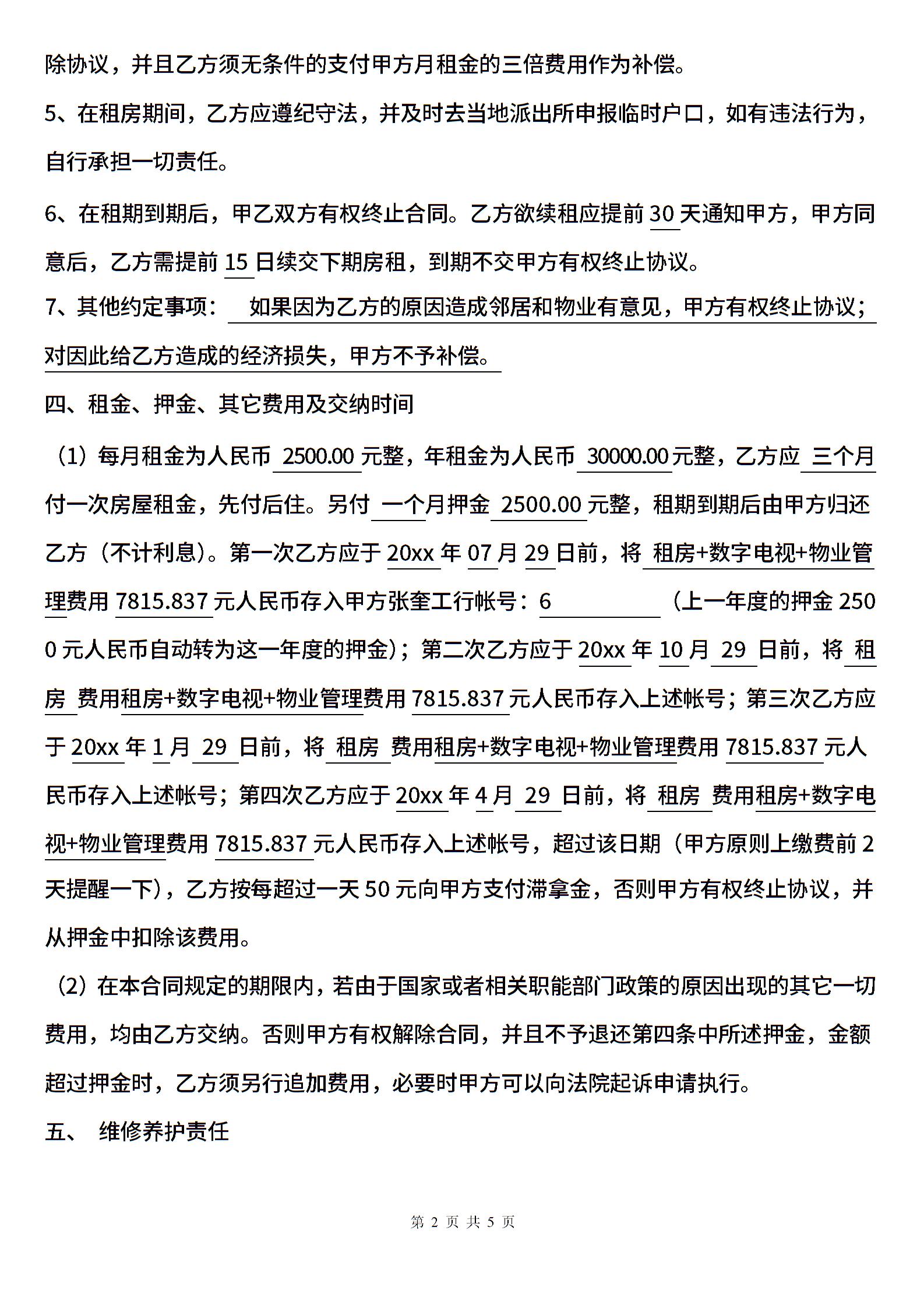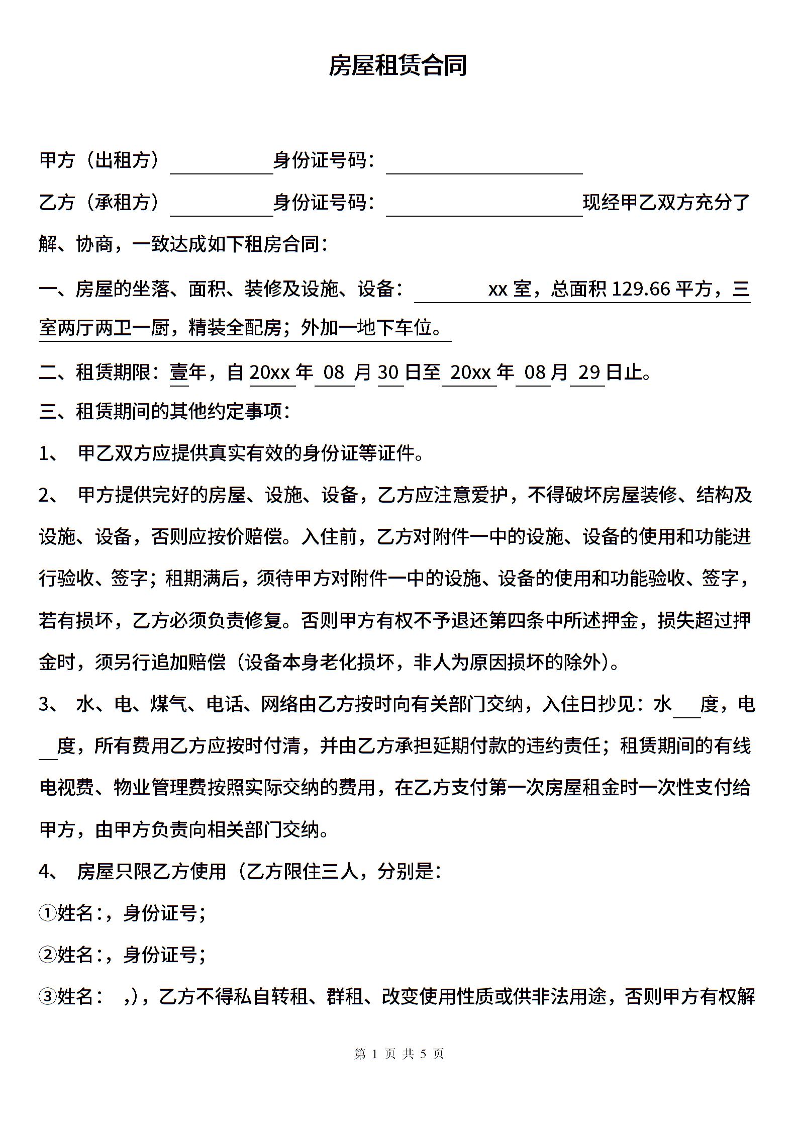 房屋租赁合同-按季付