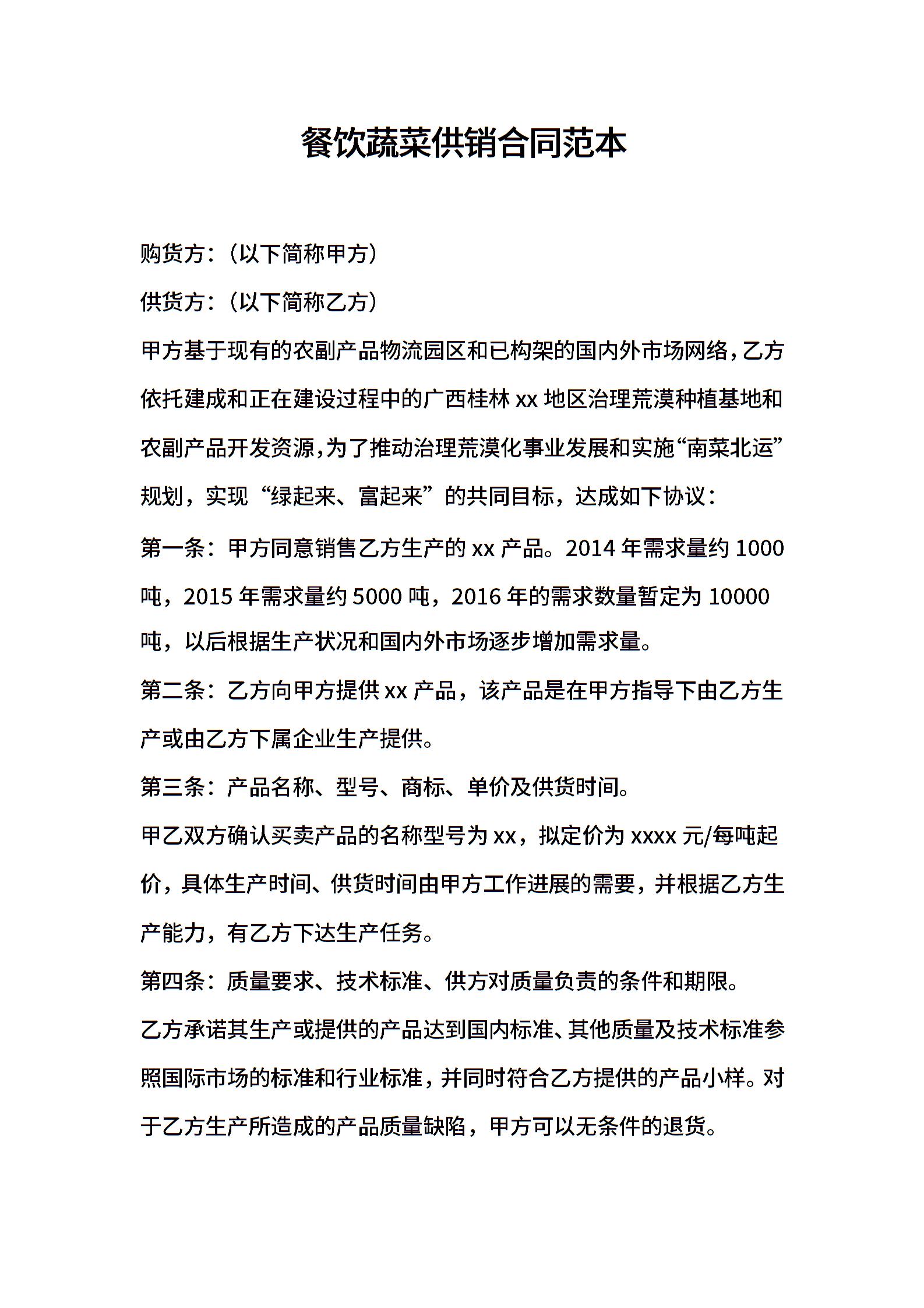 2021年餐饮蔬菜供销合同范本