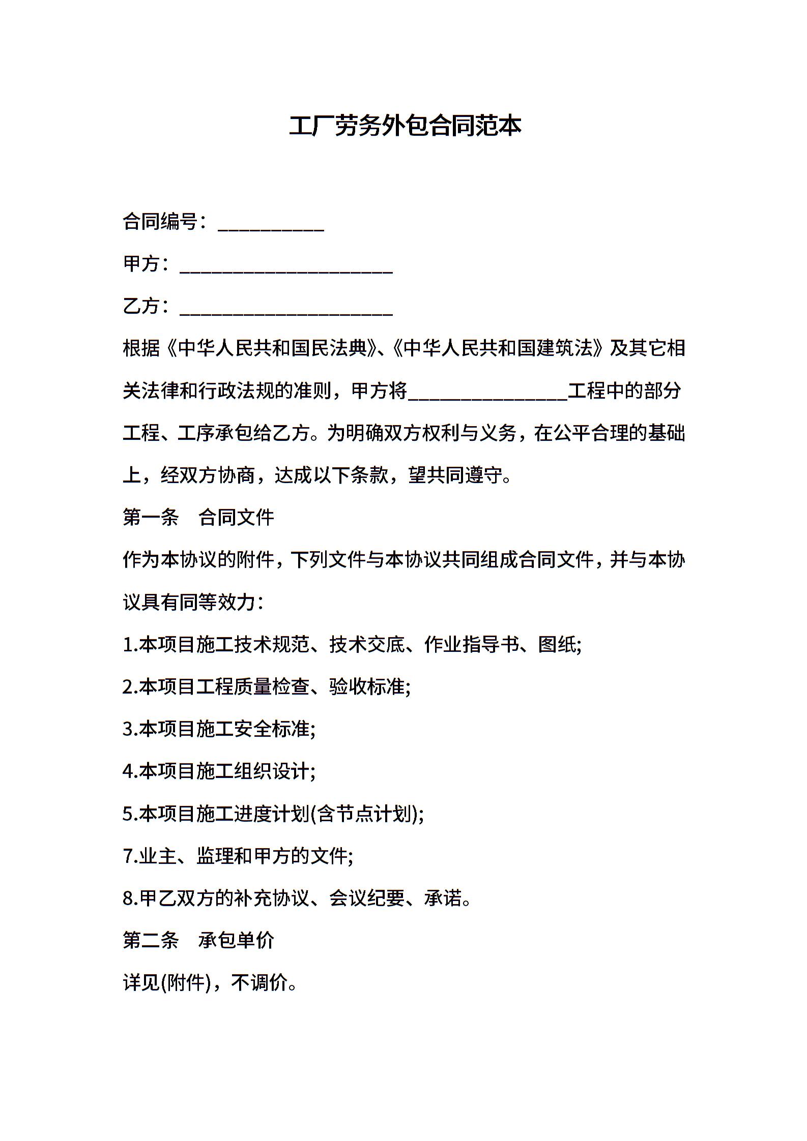 工厂劳务外包合同范本