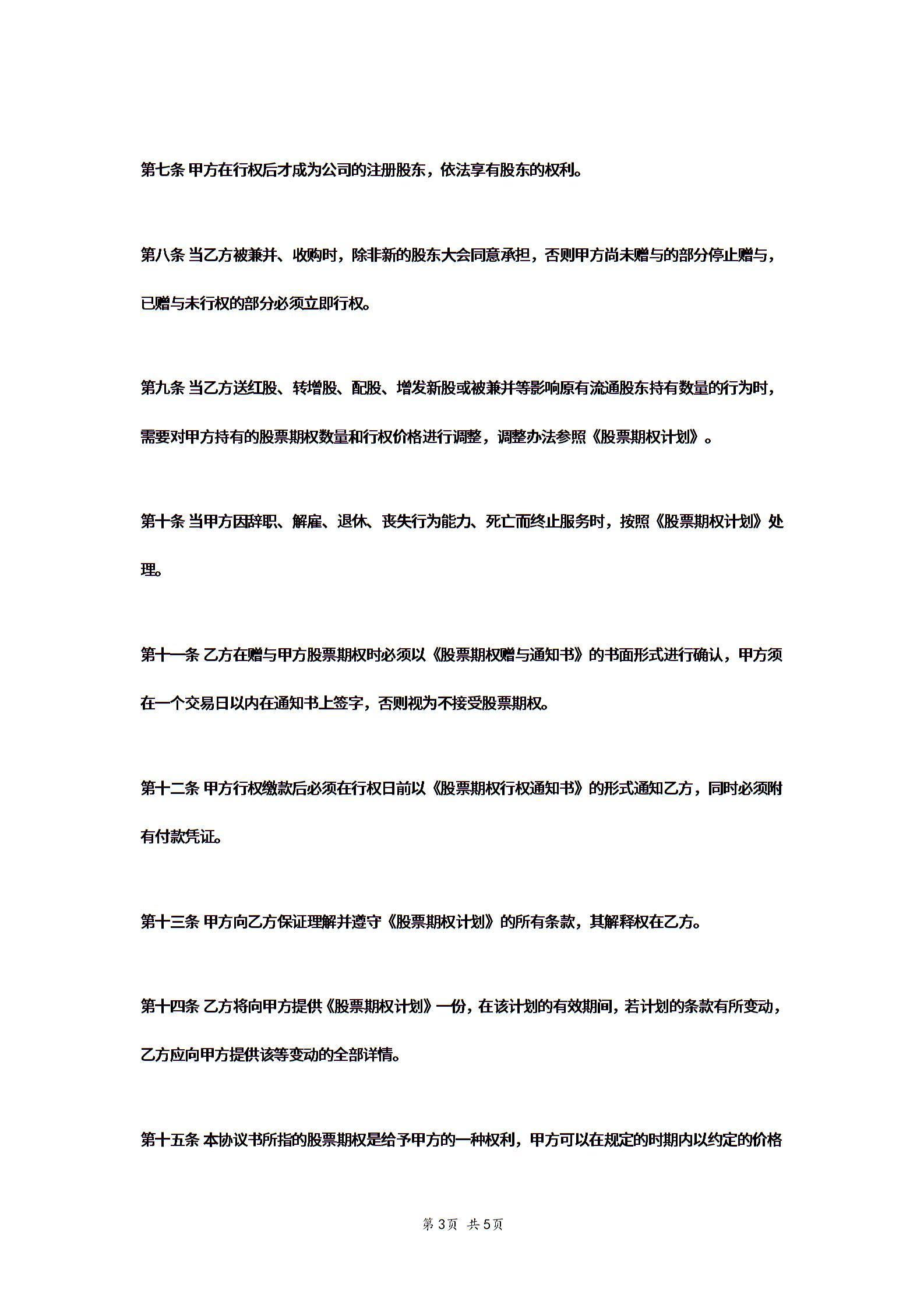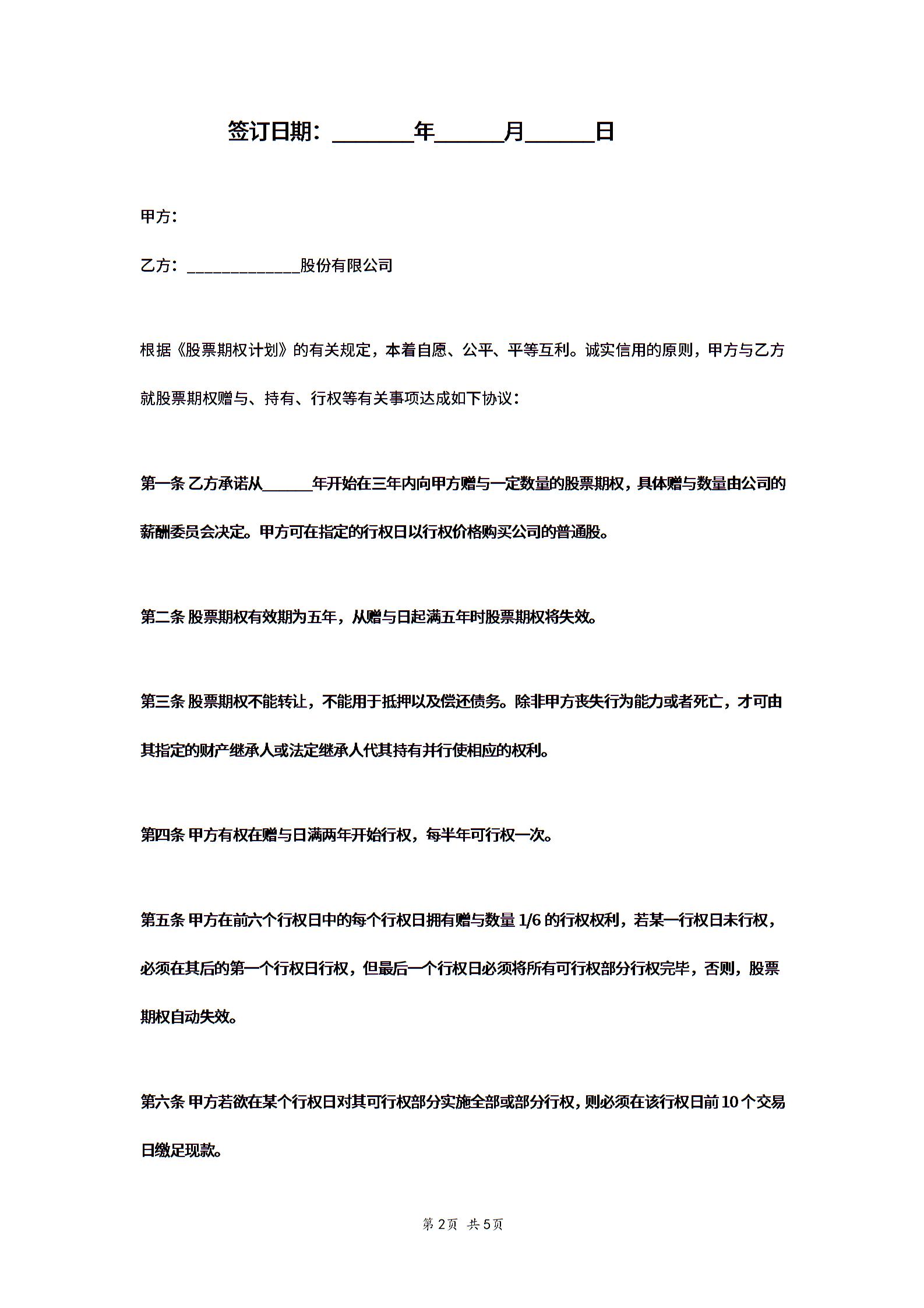 股票期权赠与协议书.doc