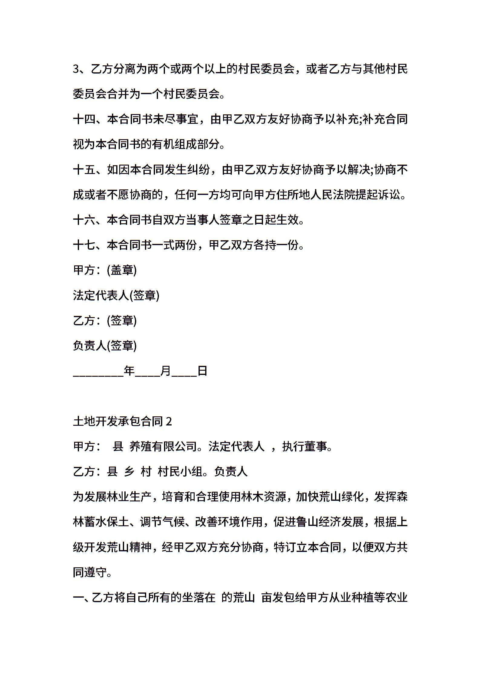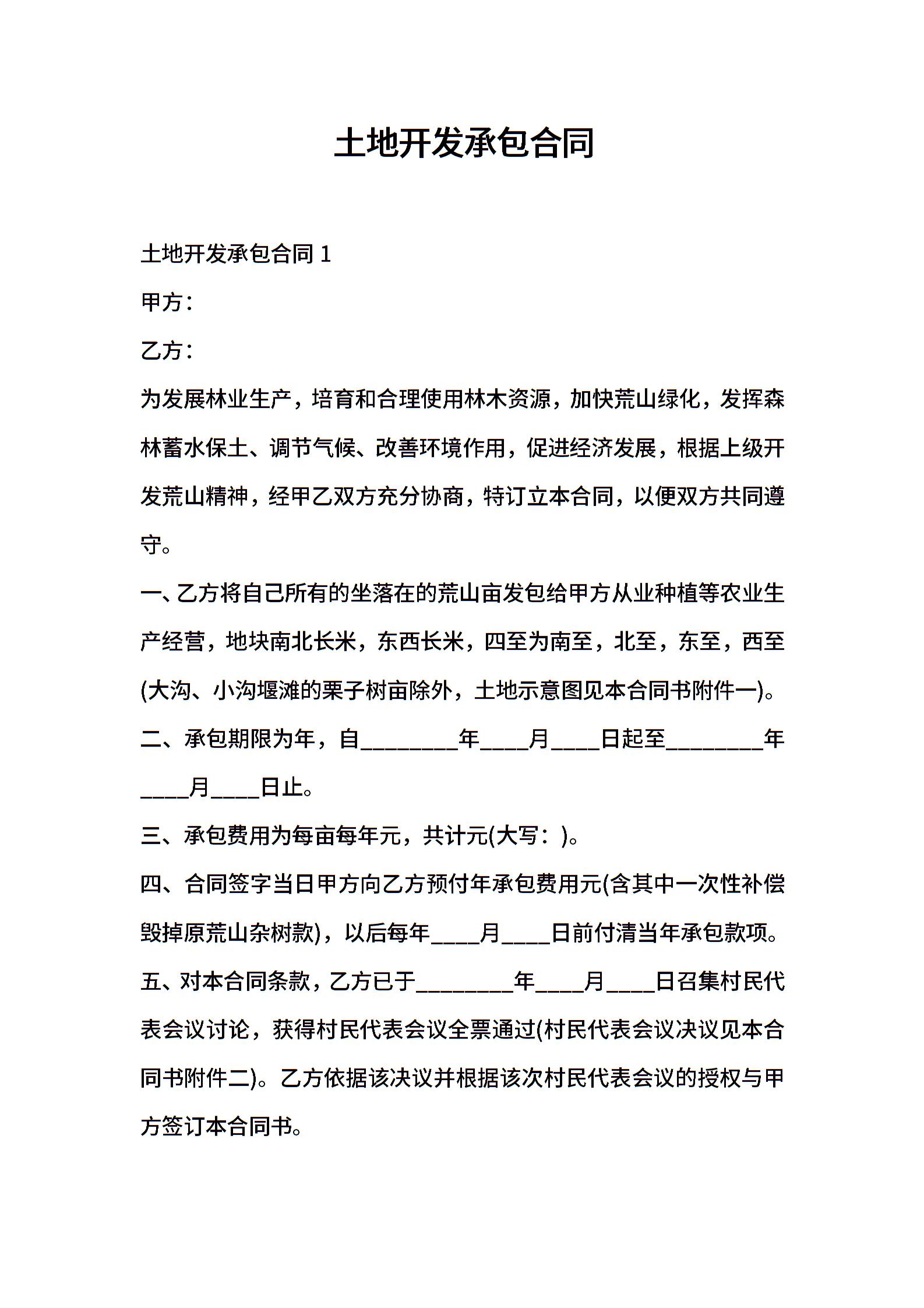 土地开发承包合同