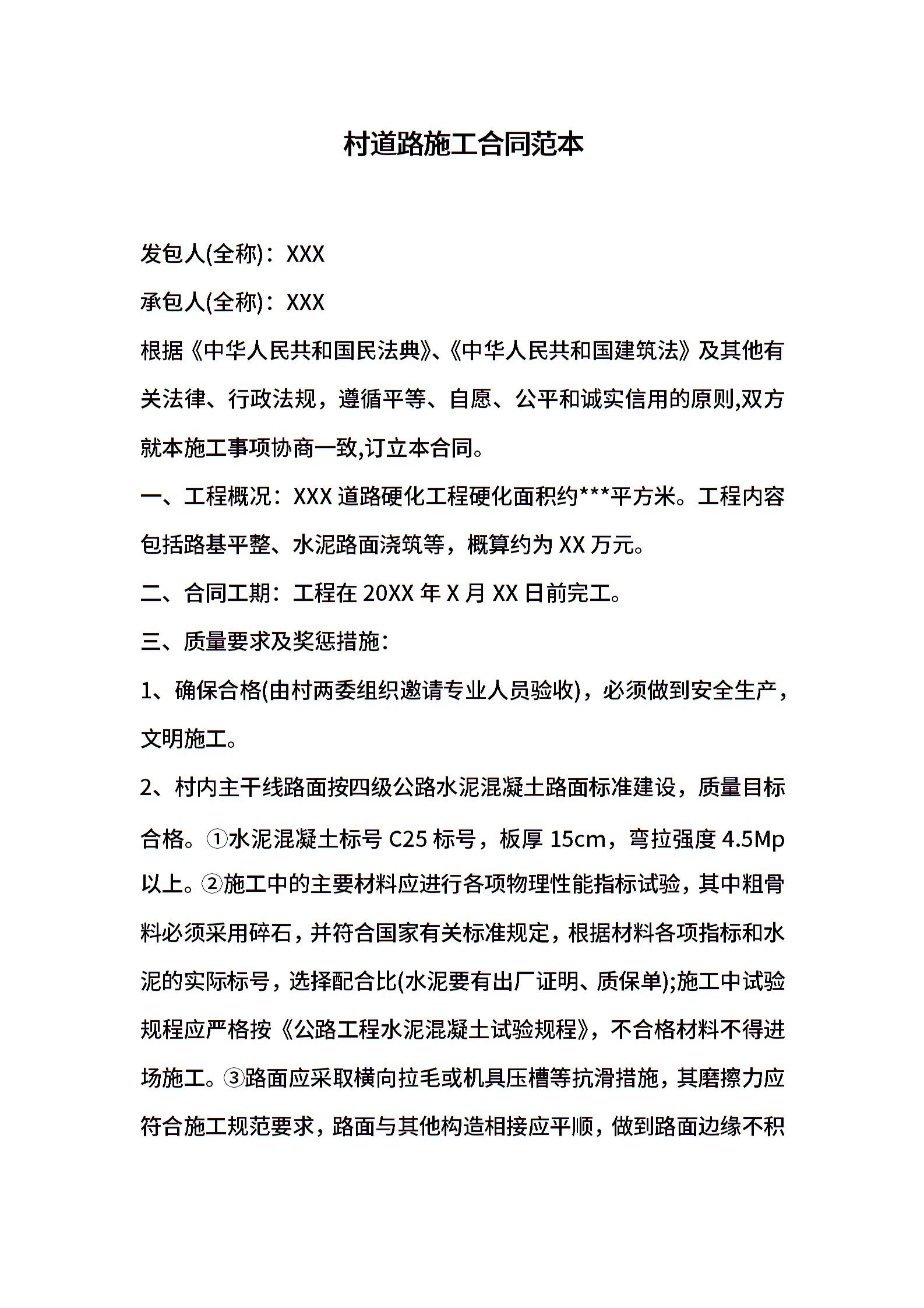 村道路施工合同范本