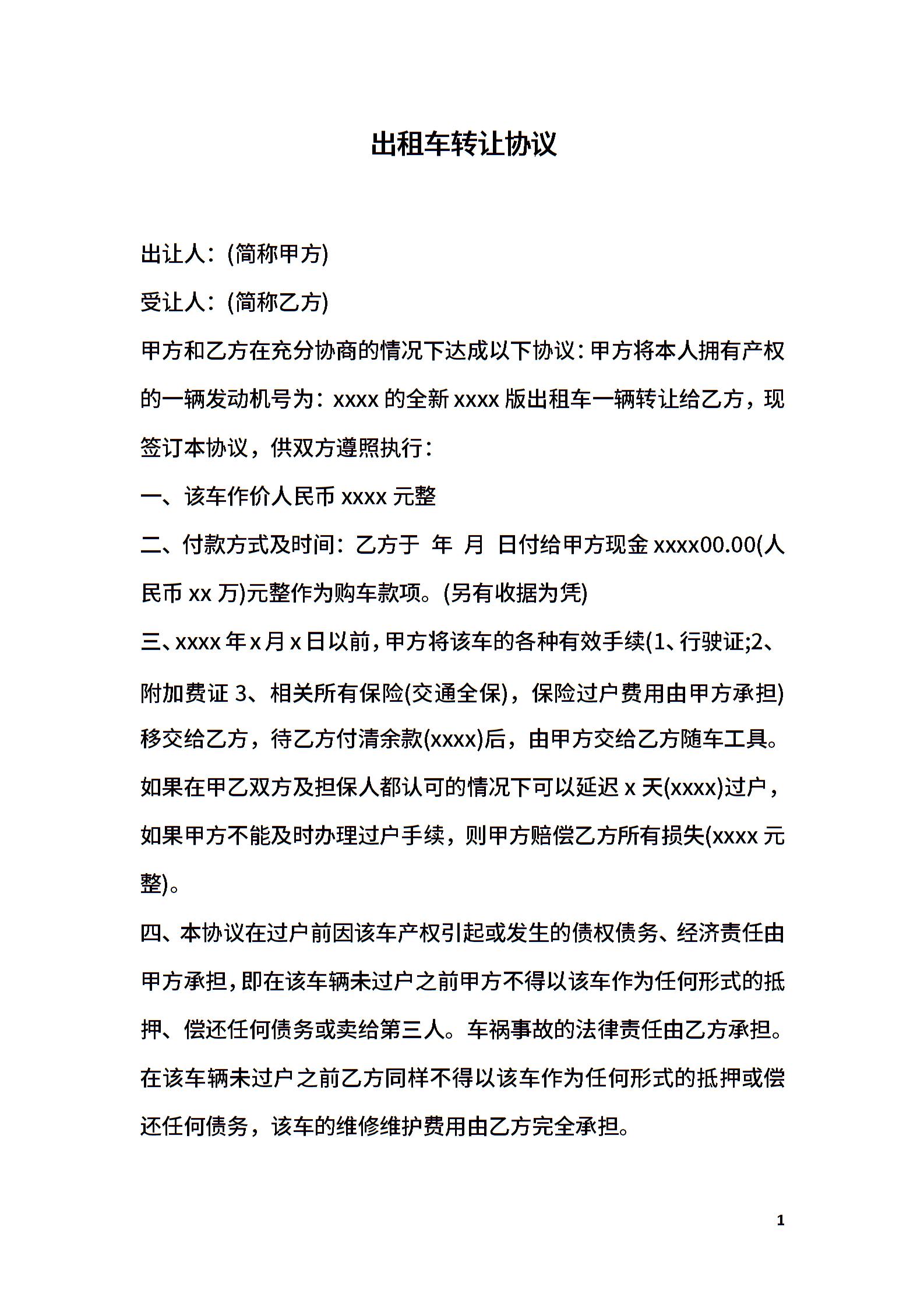 当前位置:量子办公 > 合同模板 > 转让合同 >