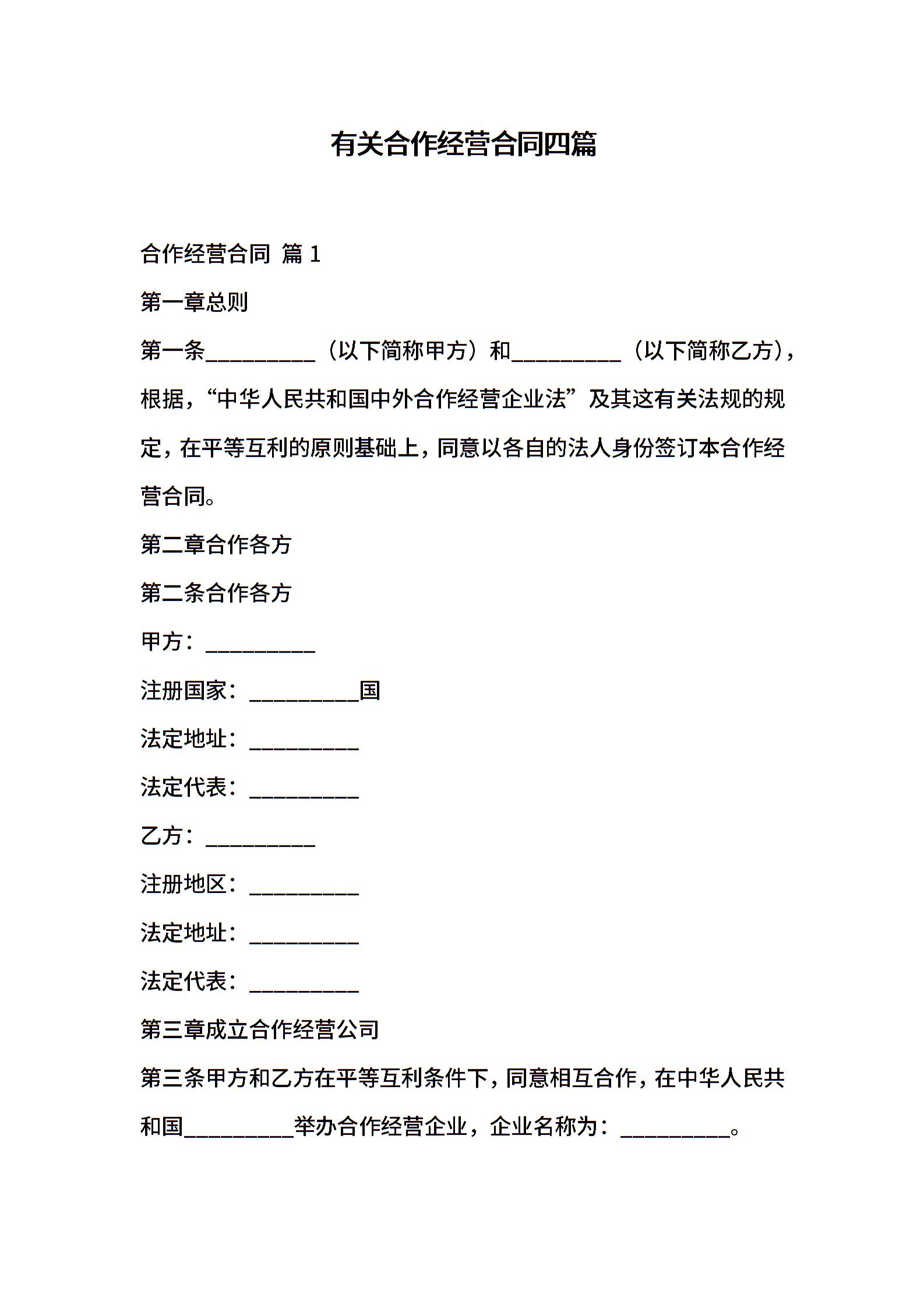 有关合作经营合同四篇