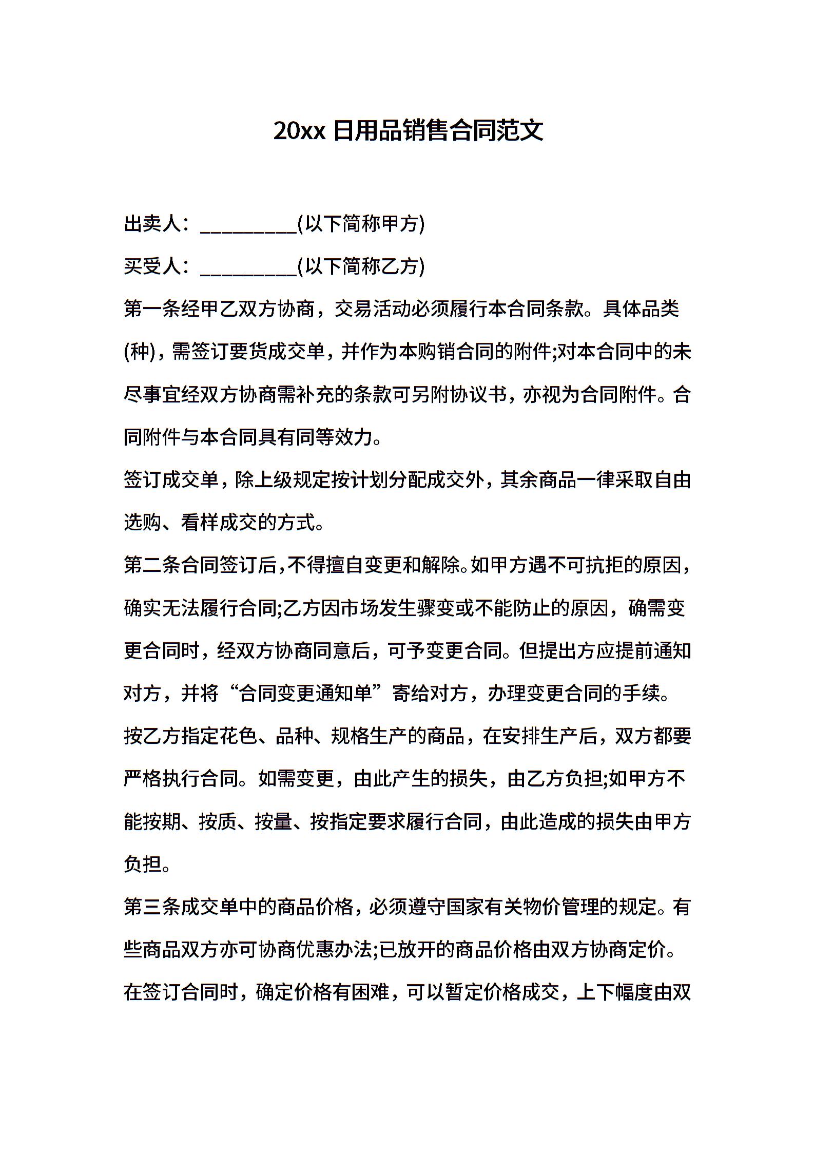 20xx日用品销售合同范文