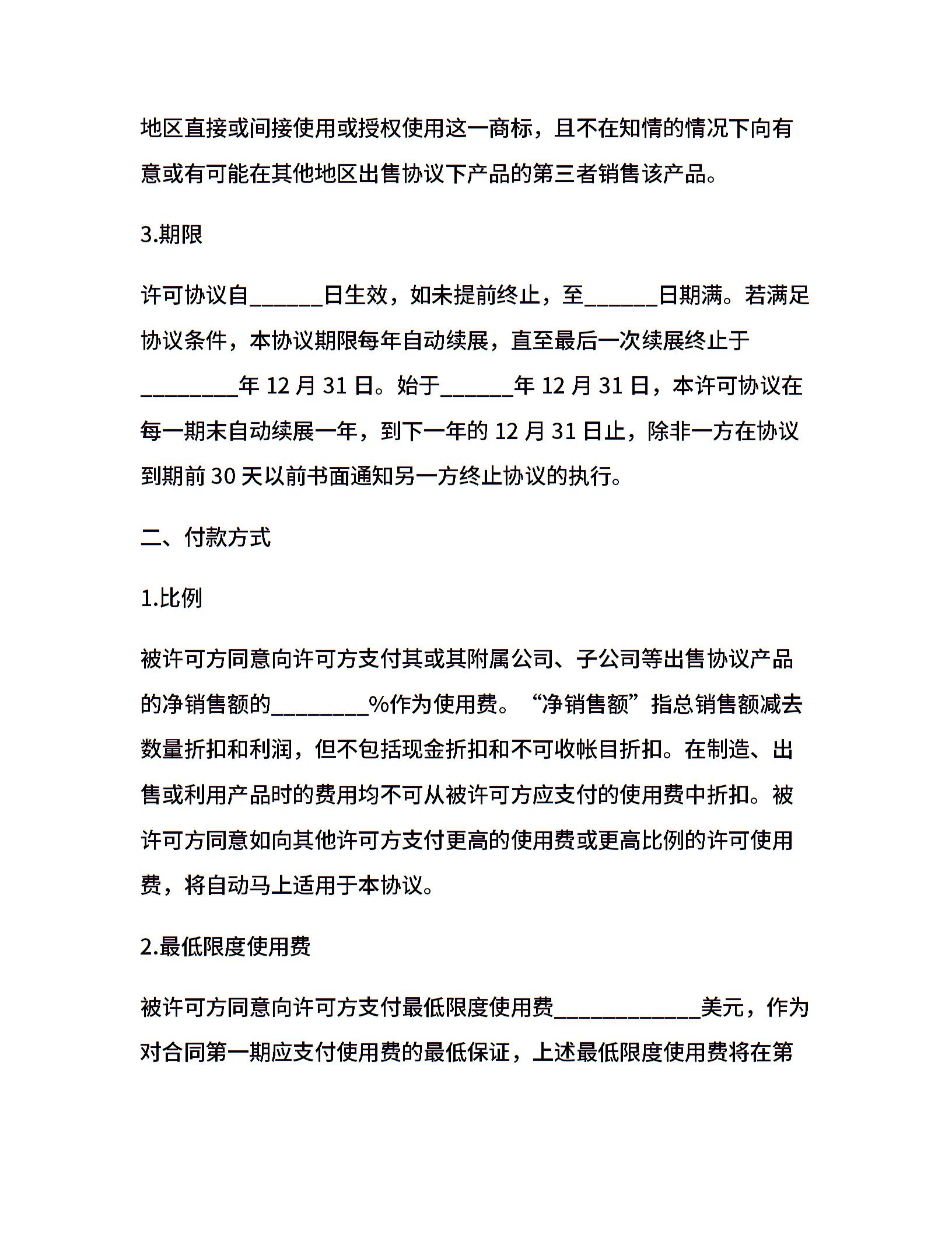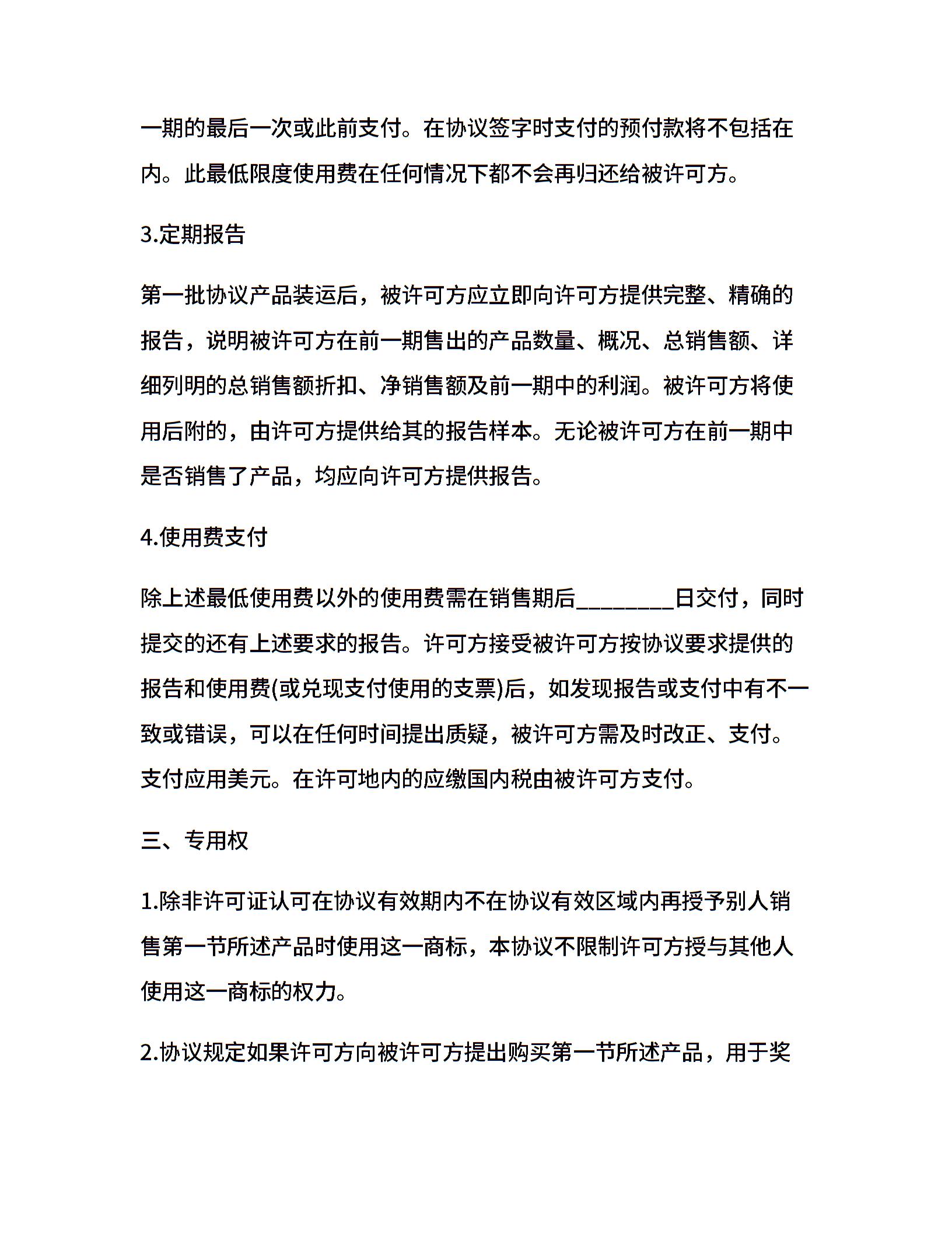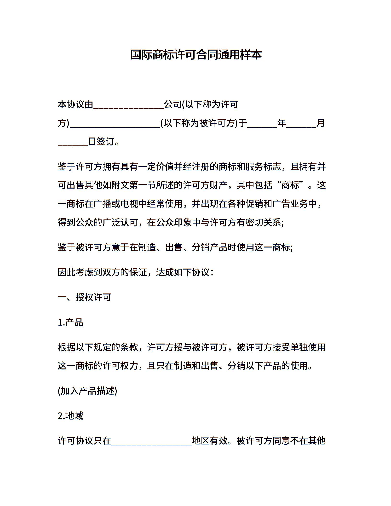 国际商标许可合同通用样本