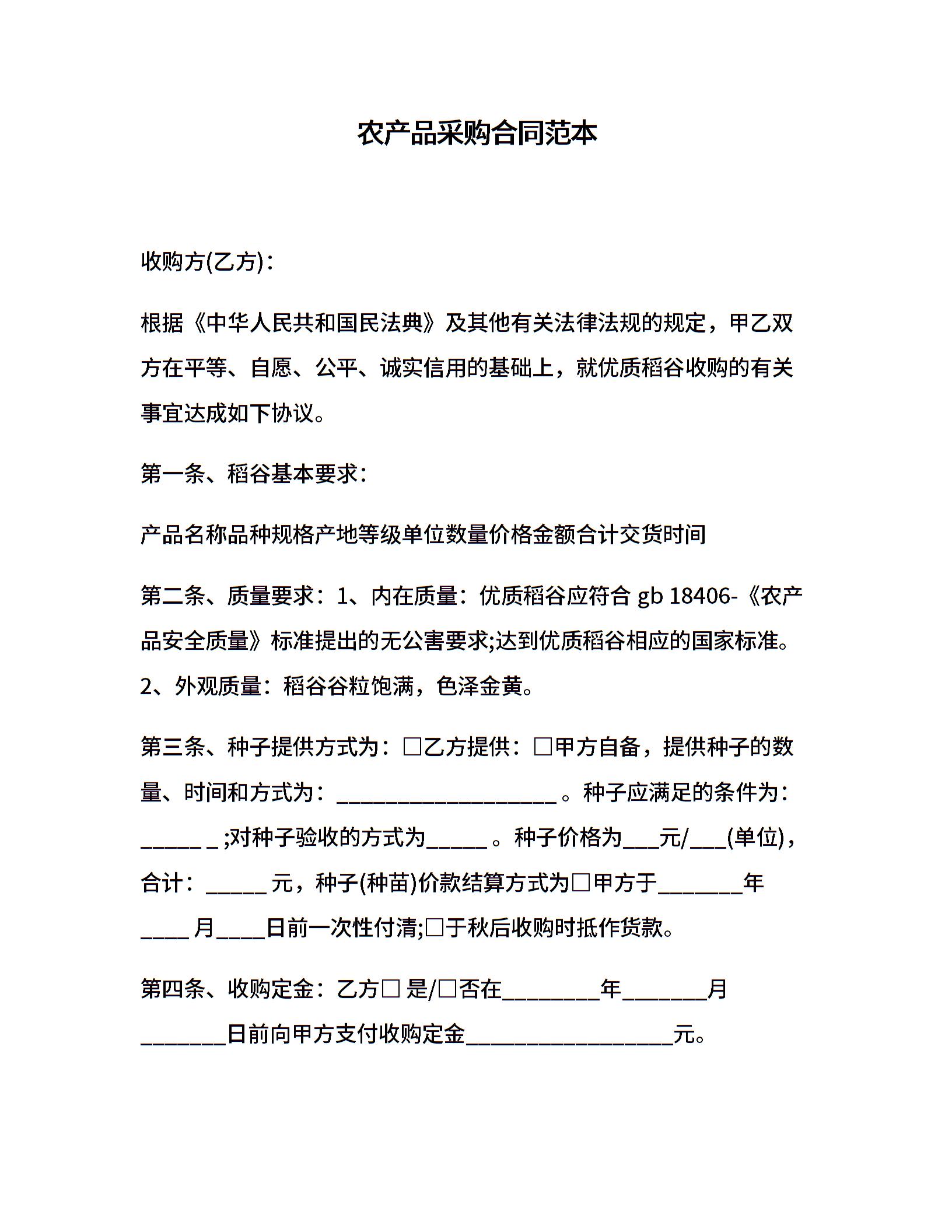 农产品采购合同范本