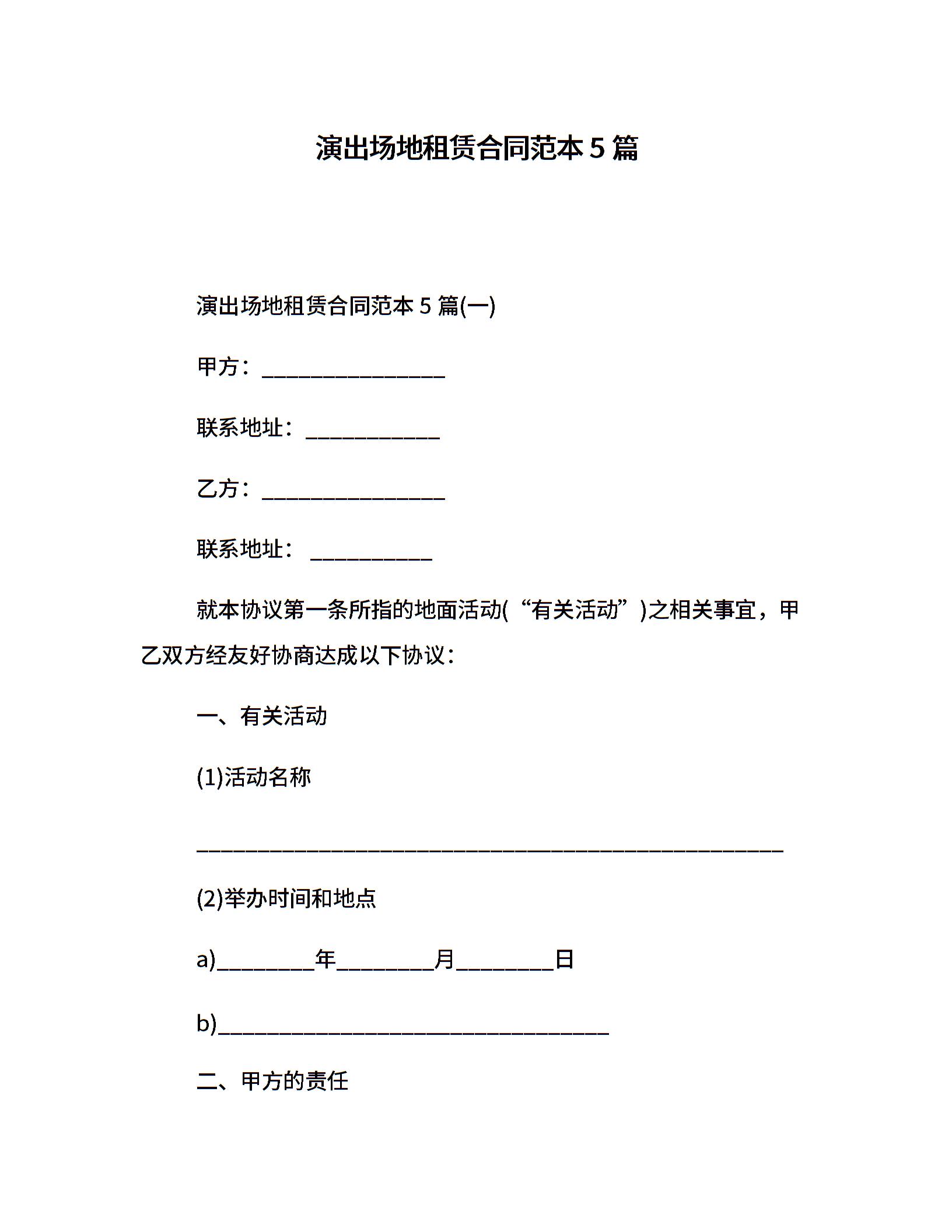 演出场地租赁合同范本5篇