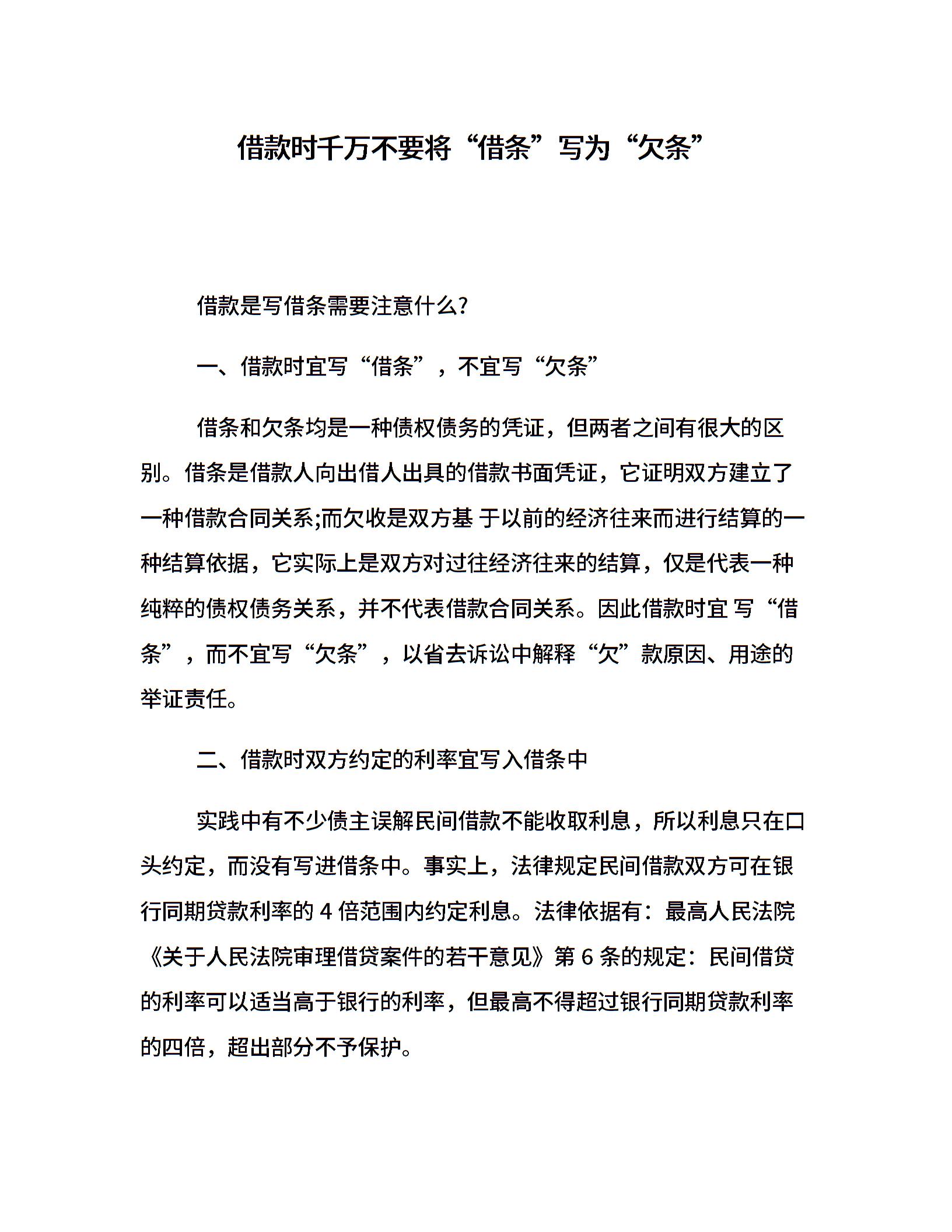 借款时千万不要将“借条”写为“欠条”