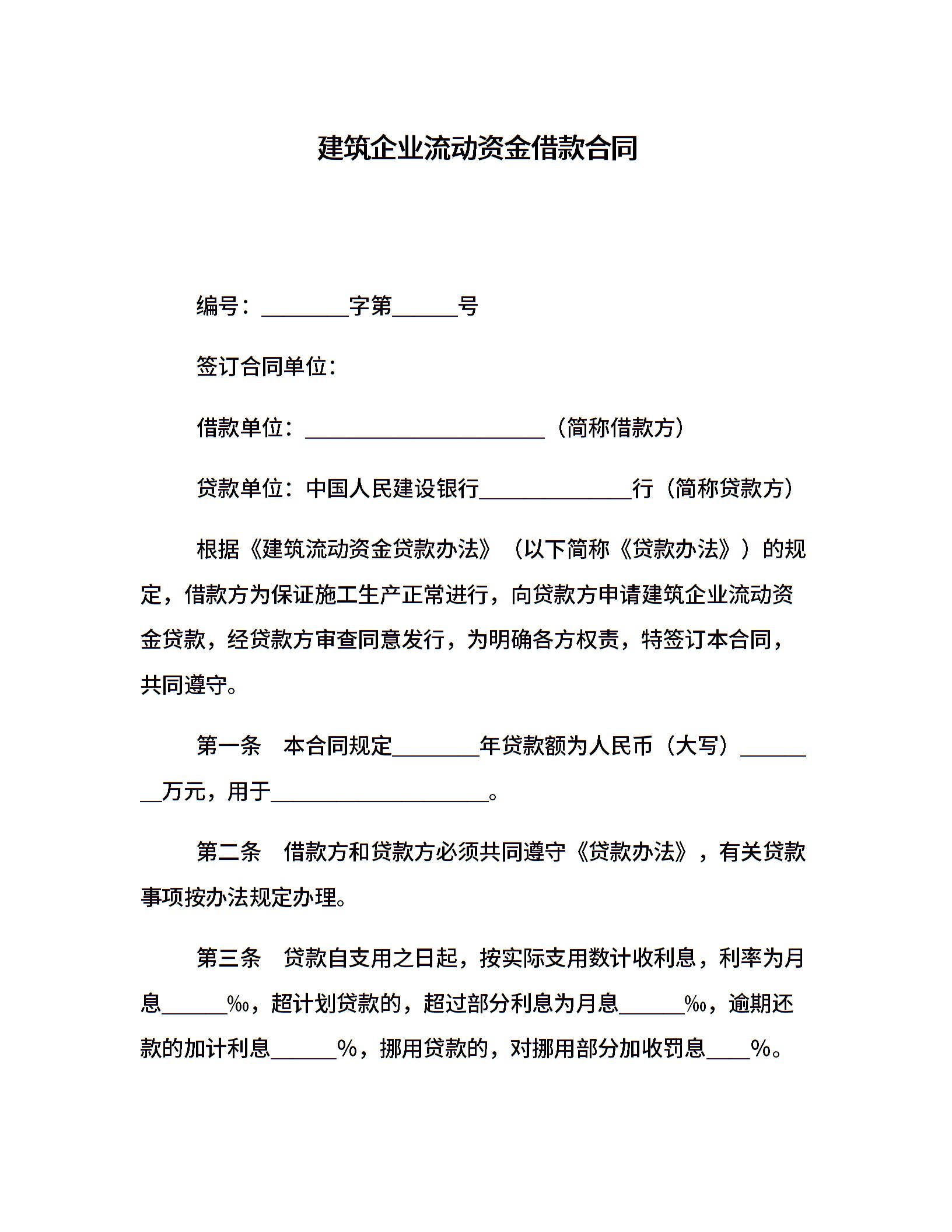 建筑企业流动资金借款合同